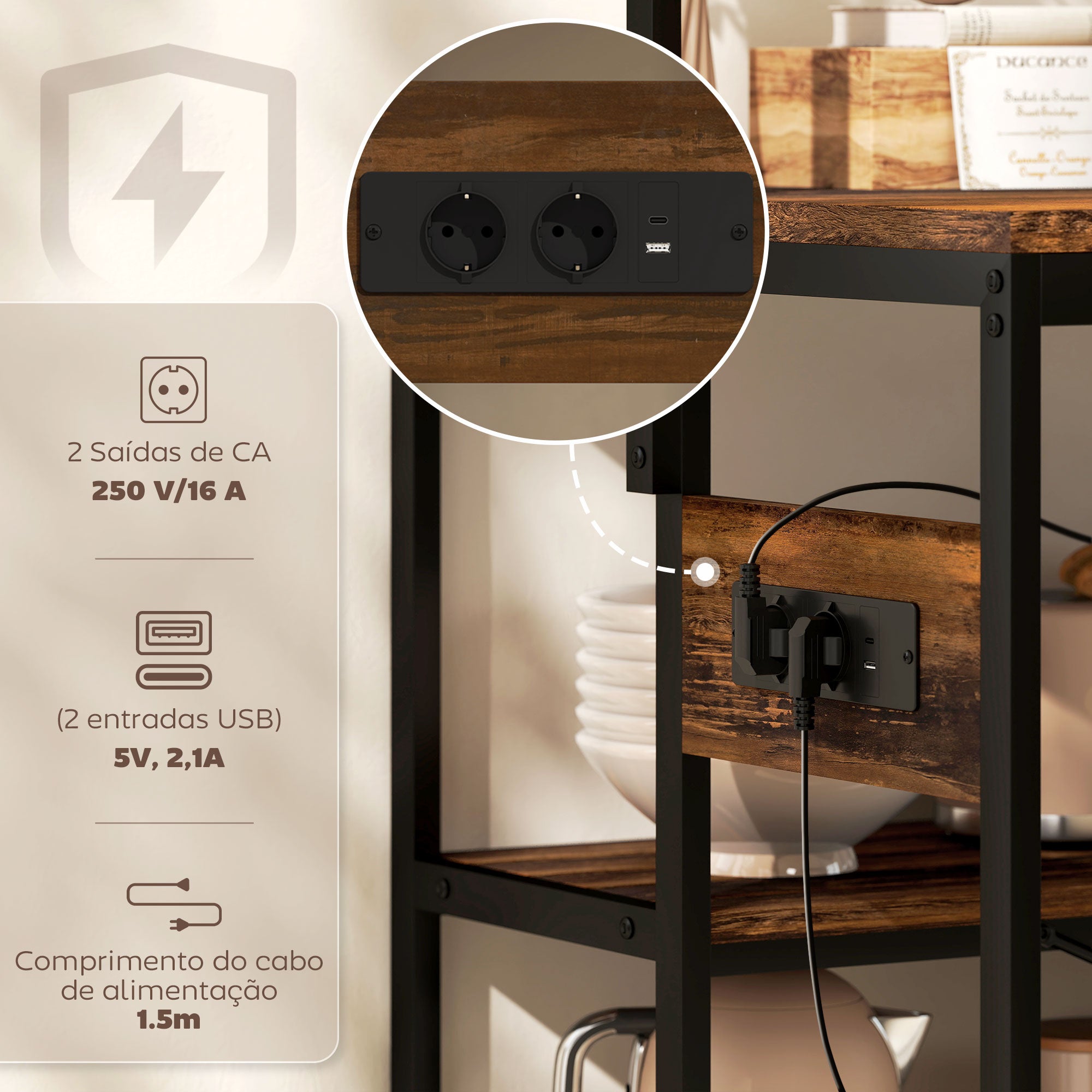 • 1 x Manual de instruções Mantenha tudo organizado e os seus dispositivos sempre carregados com esta estante de cozinha de estilo industrial da HOMCOM! Equipado com tomadas AC duplas e portos USB Tipo·A e Tipo·C, permite carregar vários aparelhos. Com prateleiras espaçosas e uma ampla bancada, oferece o espaço ideal para utensílios, panelas, livros de receitas e muito mais. É perfeito para qualquer cozinha