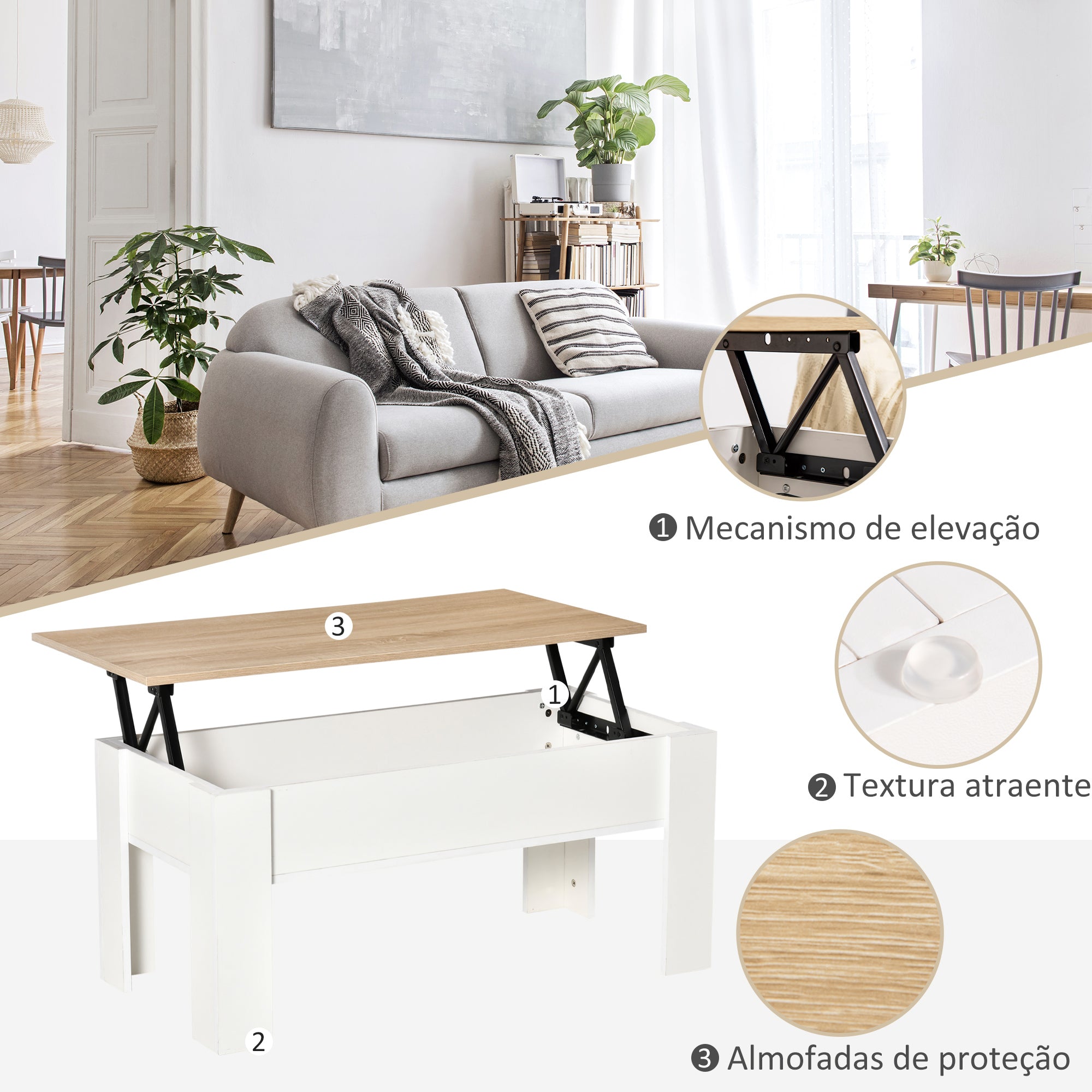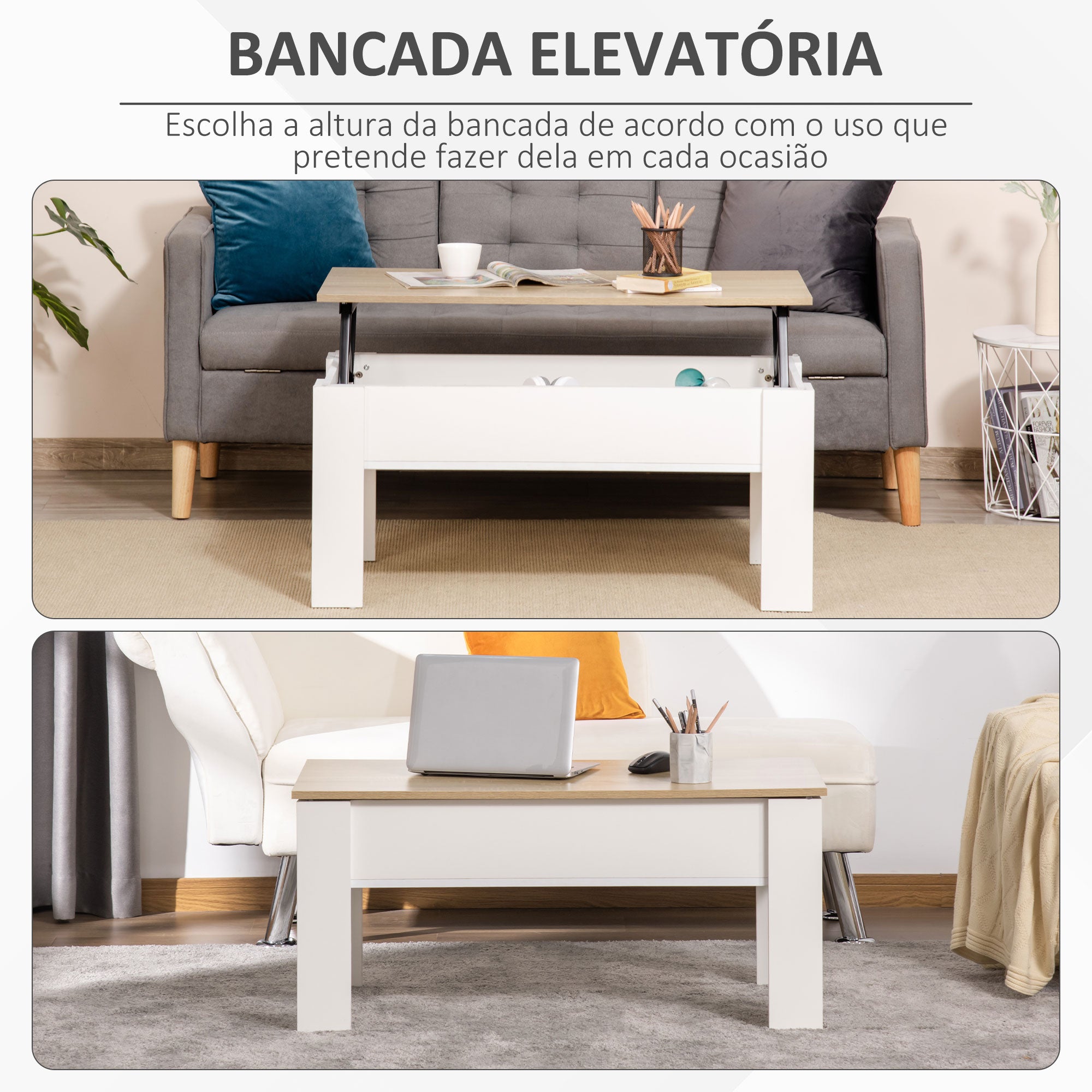 Mesa de Centro com Bancada Elevatória Mesa de Café com Compartimento Aberto e Oculto 100x50x45-58,5 cm Branco e Madeira