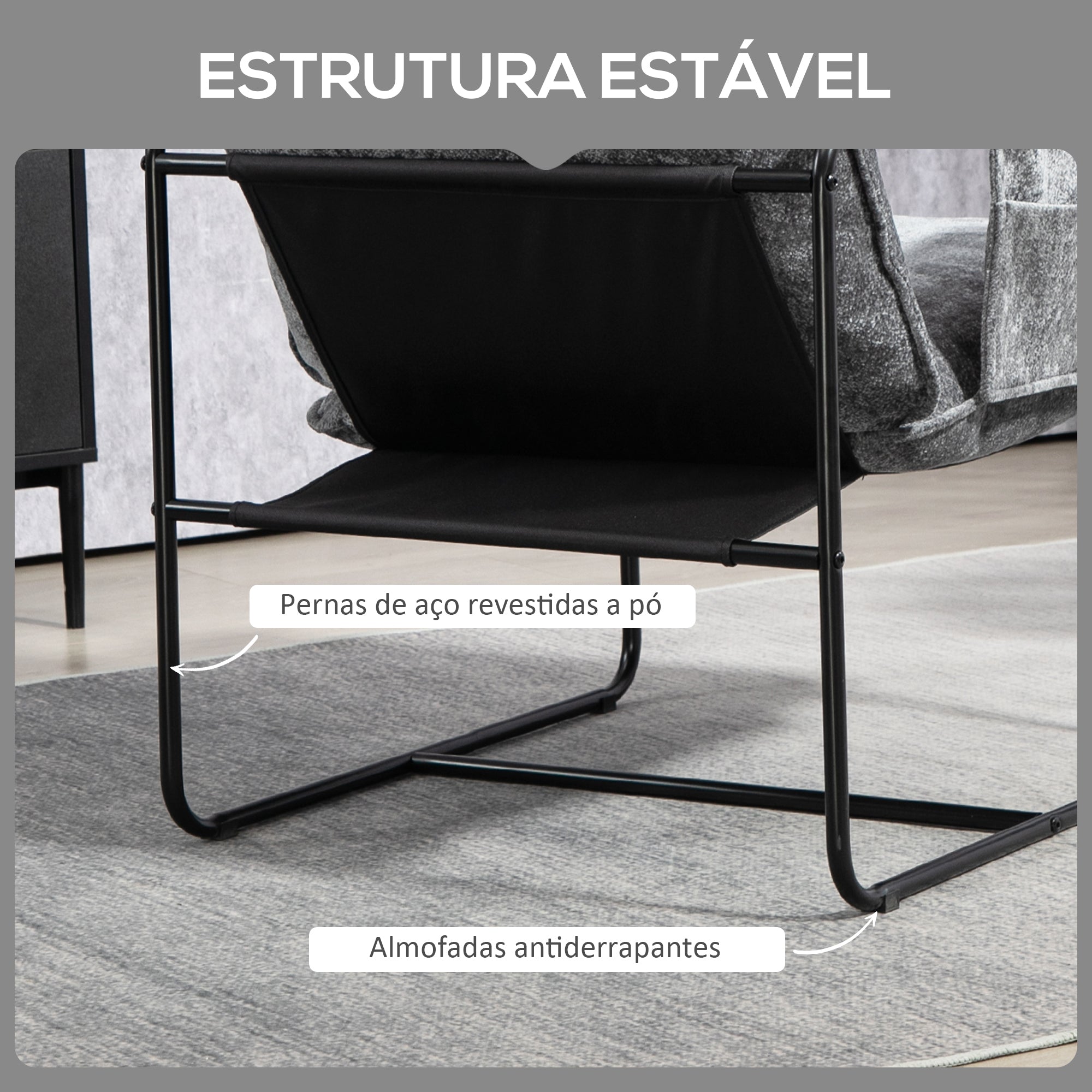 Poltrona Sala de Estar com Apoio para os Braços Bolso Lateral e Estrutura de Aço Poltrona para Dormitório Sala de Estar Carga 120 kg 68x76x81 cm Cinza