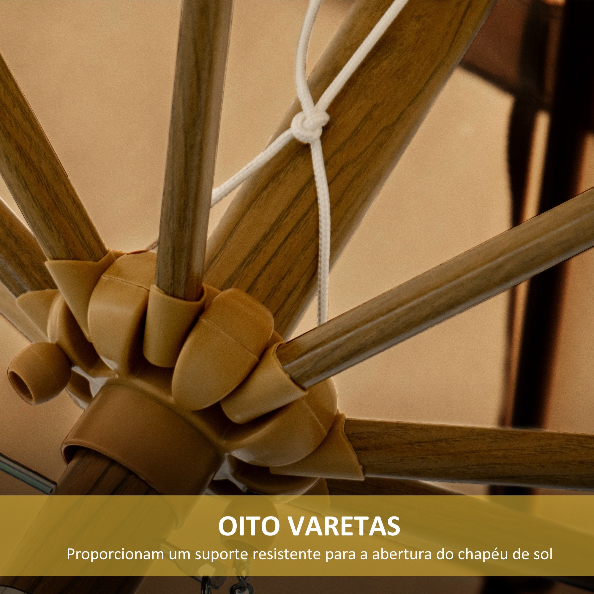- MEDIDAS TOTAIS: Ø264x240 cm (DxA). NOTA: É necessária uma base de 15 kg (não incluída). Não utilizar o chapéu de sol em condições meteorológicas adversas (vento forte, chuva e neve) Desfrute dos seus dias ao ar livre com este chapéu de sol para exterior da Outsunny. Com a sua ampla cobertura, proporciona uma generosa zona de sombra, perfeita para aqueles momentos de relaxamento no seu terraço. Graças ao seu toldo reclinável, pode ajustar a sombra para qualquer ângulo, protegendo·o do sol durante todo o dia. A manivela facilita a abertura e o fecho do chapéu de sol, e o seu desenho de duas seções permite uma desmontagem e transporte fáceis