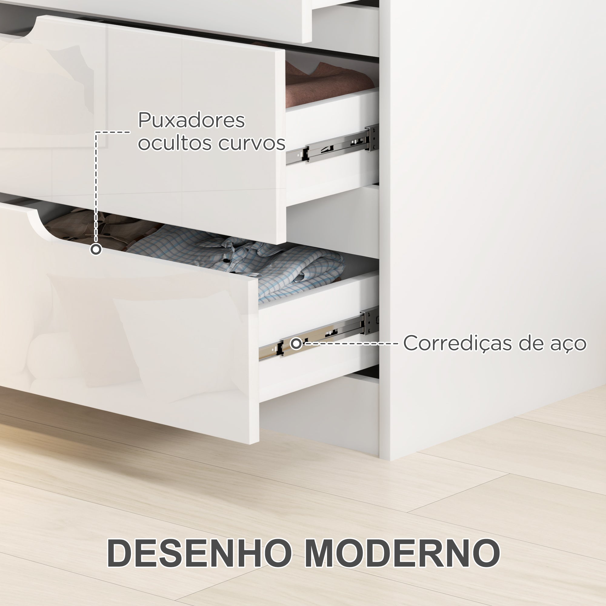 • DESENHO MODERNO E ELEGANTE: Cada gaveta possui trilhos metálicos de três seções e puxadores curvos ocultos, garantindo um deslizamento suave. Os painéis de gaveta de alto brilho conferem uma estética moderna à cómoda do quarto