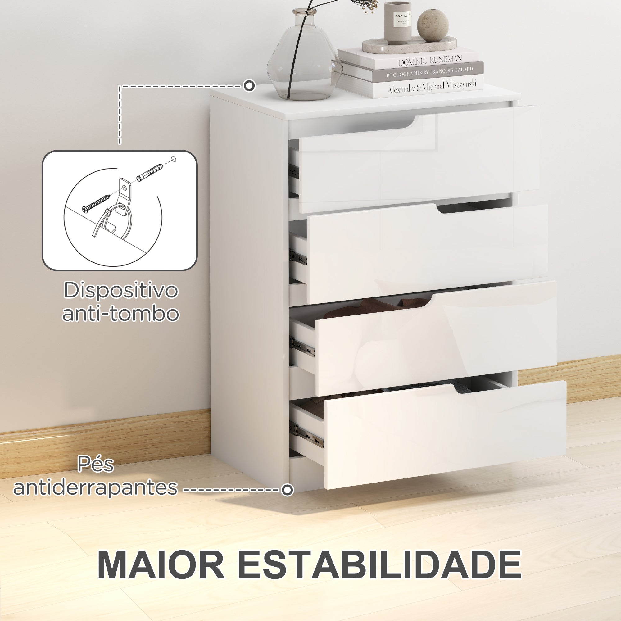 Cómoda com 4 Gavetas Cómoda de Dormitório Moderna com Sistema Anti-Tombo Cómoda para Sala de Estar Corredor 60x40x85 cm Branco
