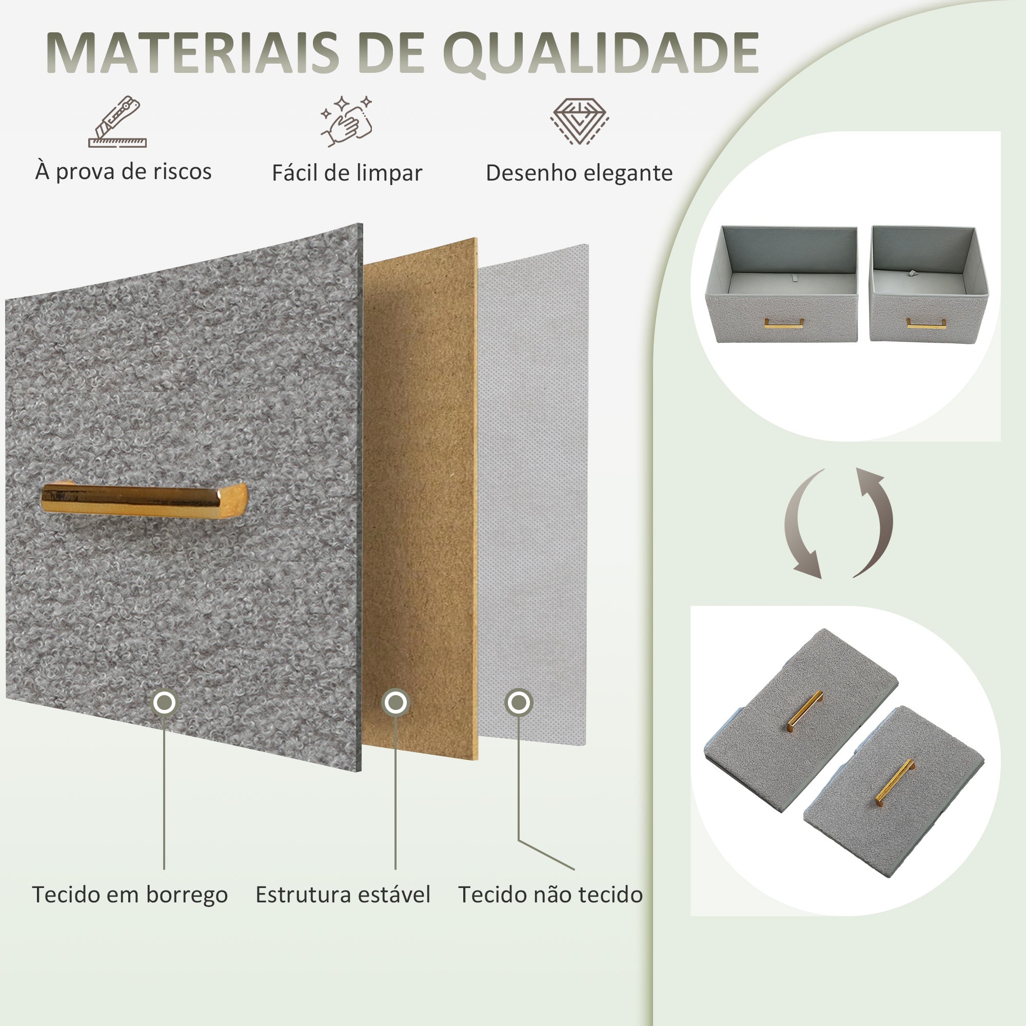 - 1 x Manual de instruções Organize o seu dormitório com esta cómoda com gavetas de tecido da HOMCOM, um móvel moderno e funcional. Equipado com tomadas integradas, portas USB e USB·C, permite carregar os seus dispositivos facilmente. Revestido em suave tecido tipo borreguito e com puxadores dourados, é a solução prática e sofisticada para manter o seu espaço arrumado e elegante