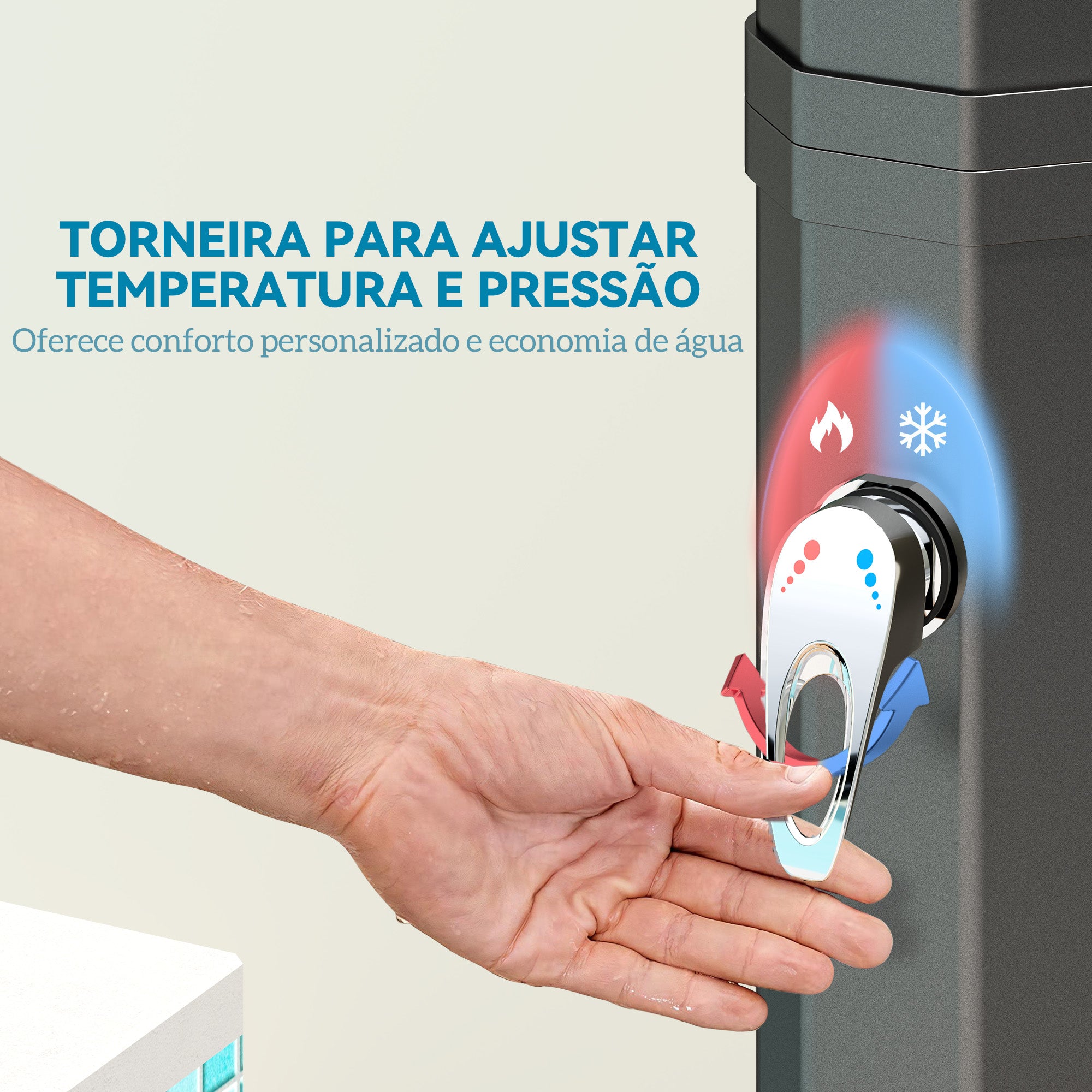- Este duche de exterior aquece a água até 55?, proporcionando uma experiência relaxante ao ar livre Conta com dois cabeçais giratórios para ajustar os ângulos do jato de água Inclui duches separados para os pés, ideais para lavar os pés ou dar banho aos animais de estimação A torneira integrada permite ajustar a temperatura da água e suporta até 3,5 bar de pressão A entrada de água universal conecta·se facilmente a mangueiras de jardim A base fixa·se de forma segura com os quatro parafusos incluídos A junta de borracha integrada previne fugas de água.