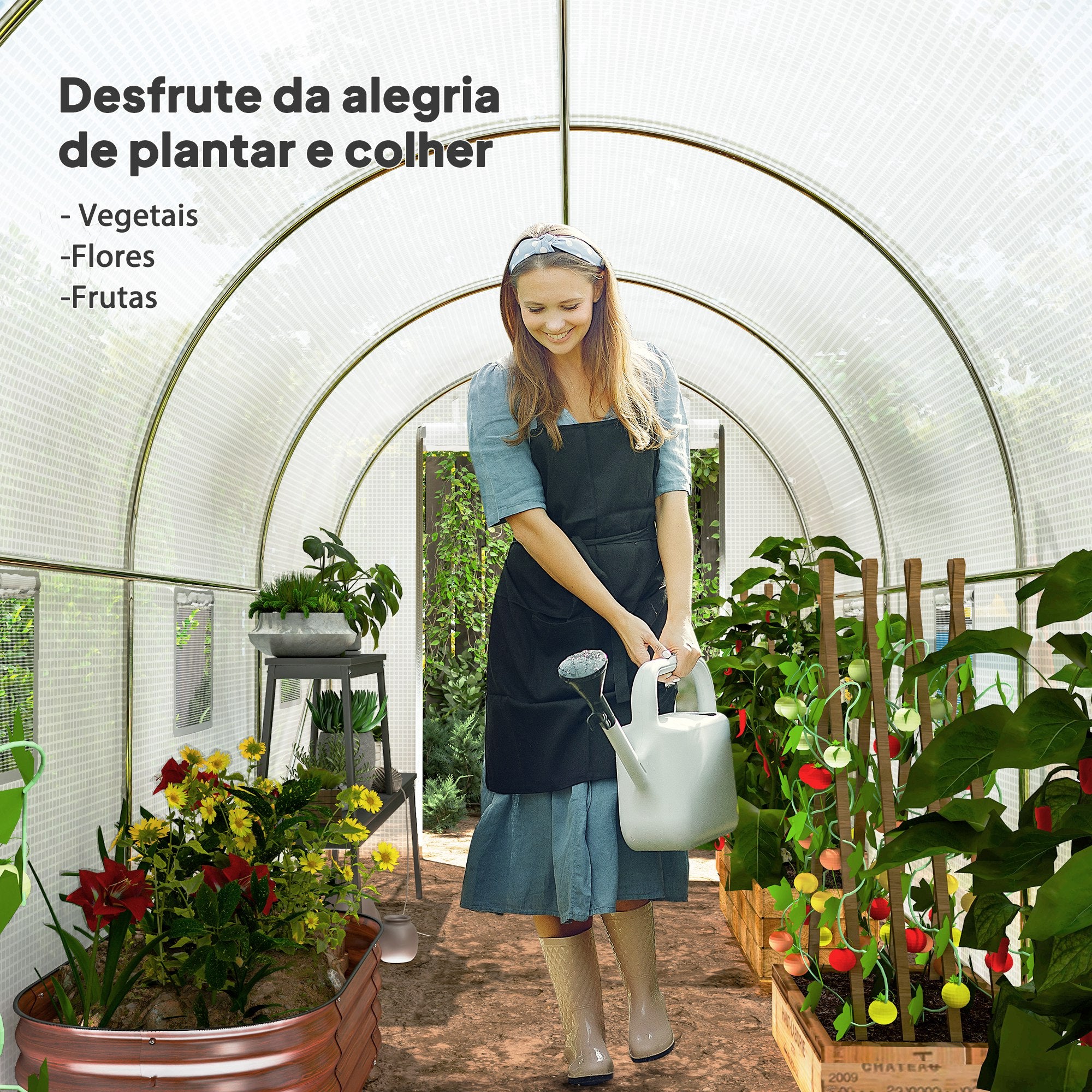 - Área útil de 10 m² ideal para todos os tipos de plantio: flores, legumes, frutas, etc. Desenho e fabricação de alta qualidade ideal para uma utilização prolongada Proteção garantida contra perigos climáticos, aves, raios UV, etc. Estrutura tubular reforçada em aço galvanizado garante uma maior resistência e estabilidade Cobertura de polietileno 140 g/m² resistente aos raios UV Ótima ventilação graças à sua grande porta com fecho de correr e às suas 8 janelas de enrolar Possui 4 estacas e 4 cordas de tensão para maior estabilidade e segurança Requer montagem