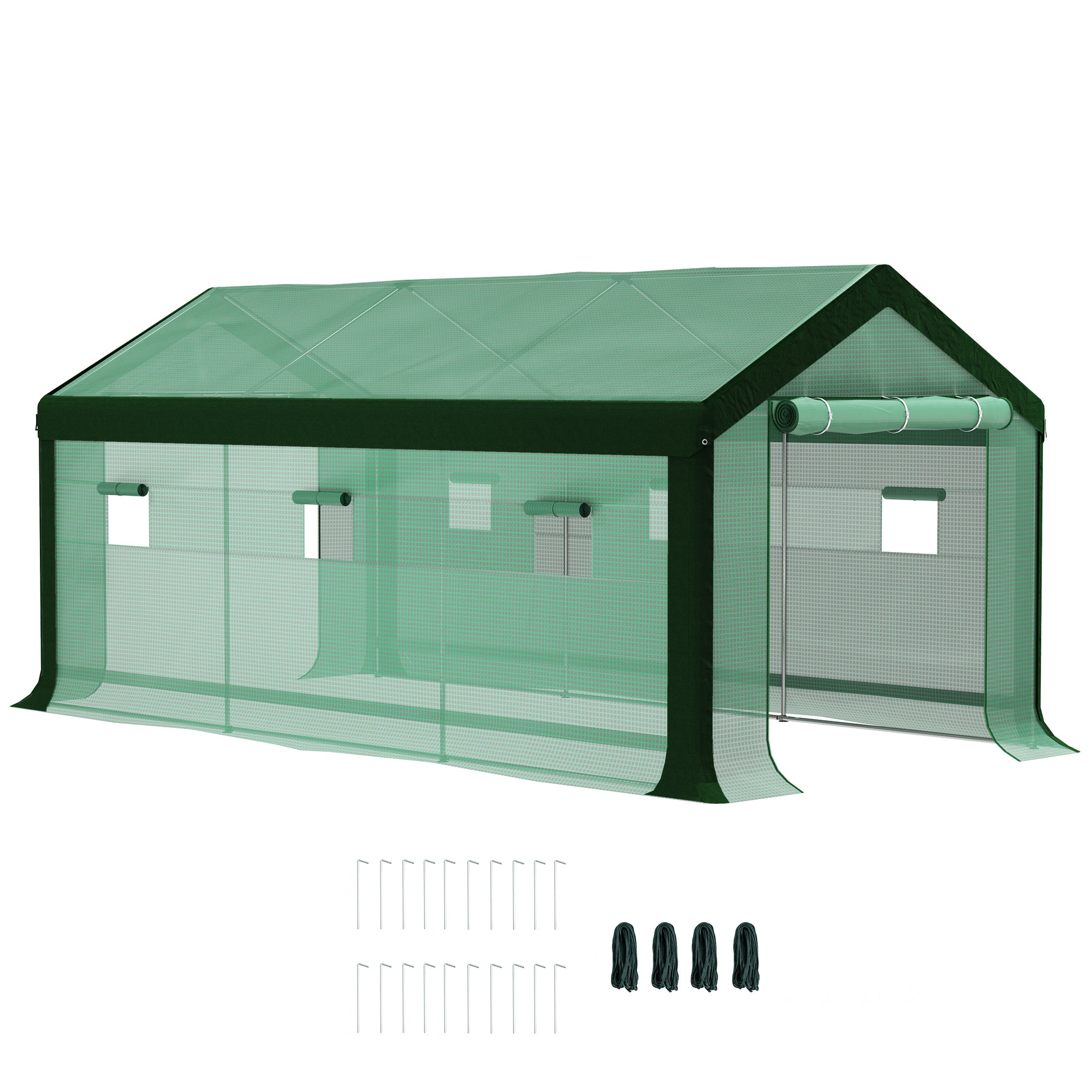 Estufa Tipo Túnel 6x3x2,8 m Estufa de Exterior com 6 Janelas Cobertura de PE Anti UV e 2 Portas Enroláveis com Fecho de Correr Estufa para Jardim Pátio Verde