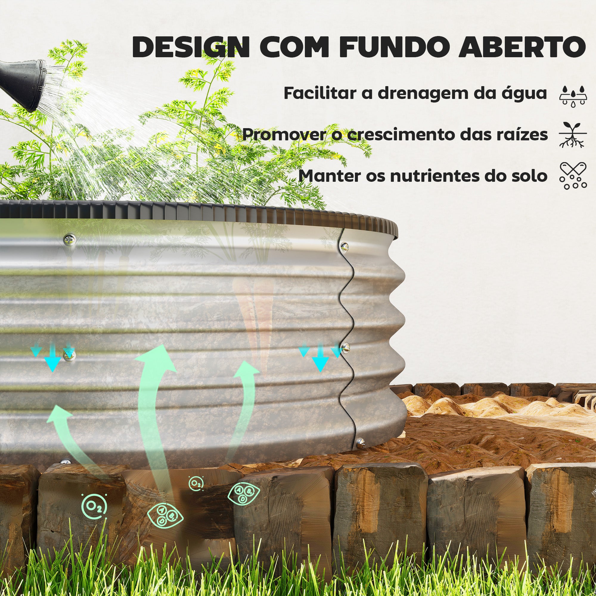 - As jardineiras espaçosas para exterior oferecem um espaço profundo para plantar vegetais, ervas aromáticas e flores Aço galvanizado sólido que resiste à ferrugem e às condições climatéricas para um uso prolongado Design modular das jardineiras grandes permite uma montagem flexível em forma redonda ou oval Bordas superiores lisas com tiras de borracha para maior segurança durante a montagem O design com fundo aberto dos canteiros elevados garante uma melhor drenagem e evita o apodrecimento das raízes.