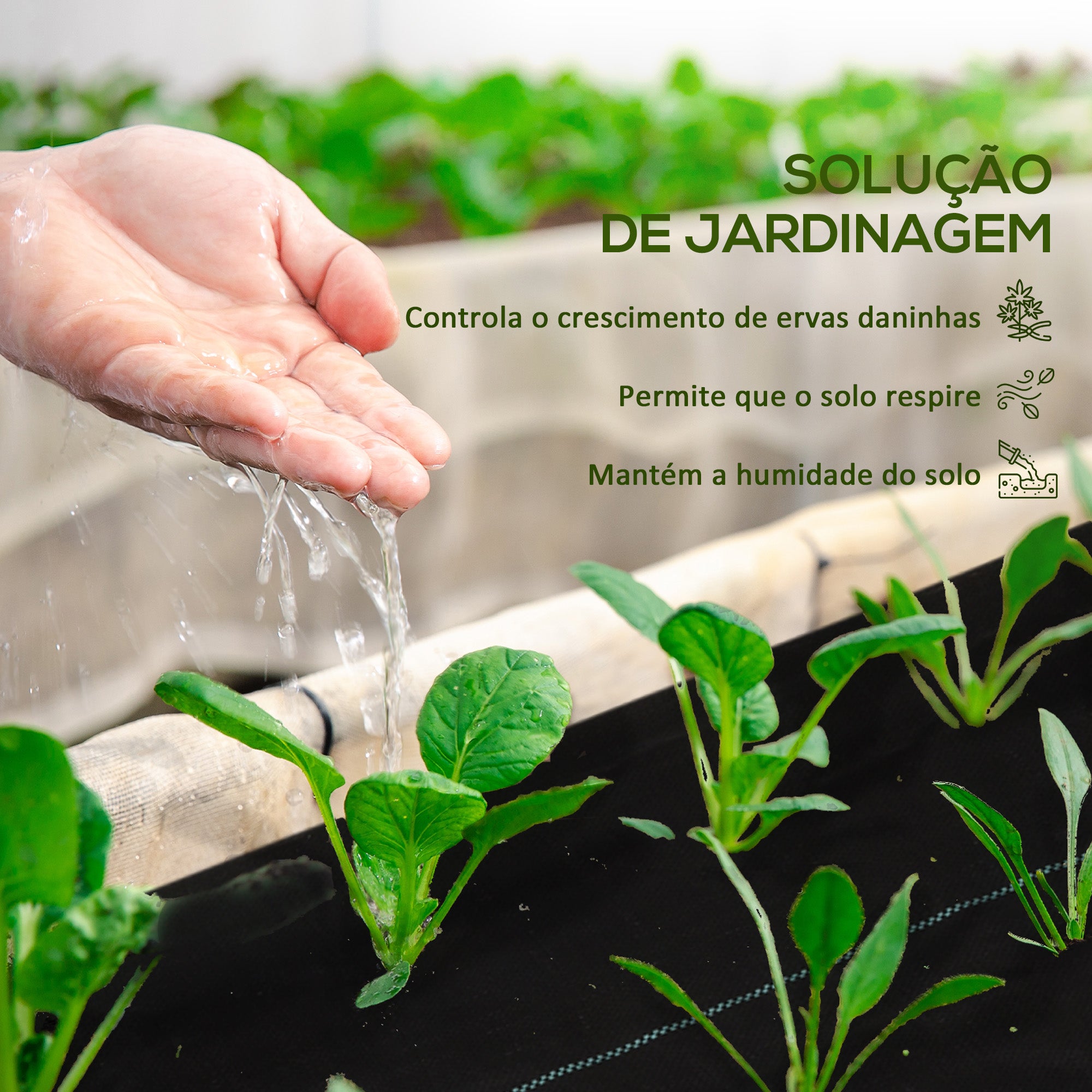 • 1 x Rolo de malha anti·ervas; Se pretende eliminar ervas daninhas, proliferação de fungos e algas, este rolo de malha geotêxtil da Outsunny é um excelente produto para utilizar no seu jardim, estufa ou horta urbana. Seu formato em rolo permite que seja facilmente transportado e cortado sob medida. Plante e evite o crescimento de ervas daninhas, deixando passar o ar e a água, mas não os raios do sol. Você também pode usá·lo como uma camada protetora para passarelas ou caminhos de cascalho, pedras, etc.