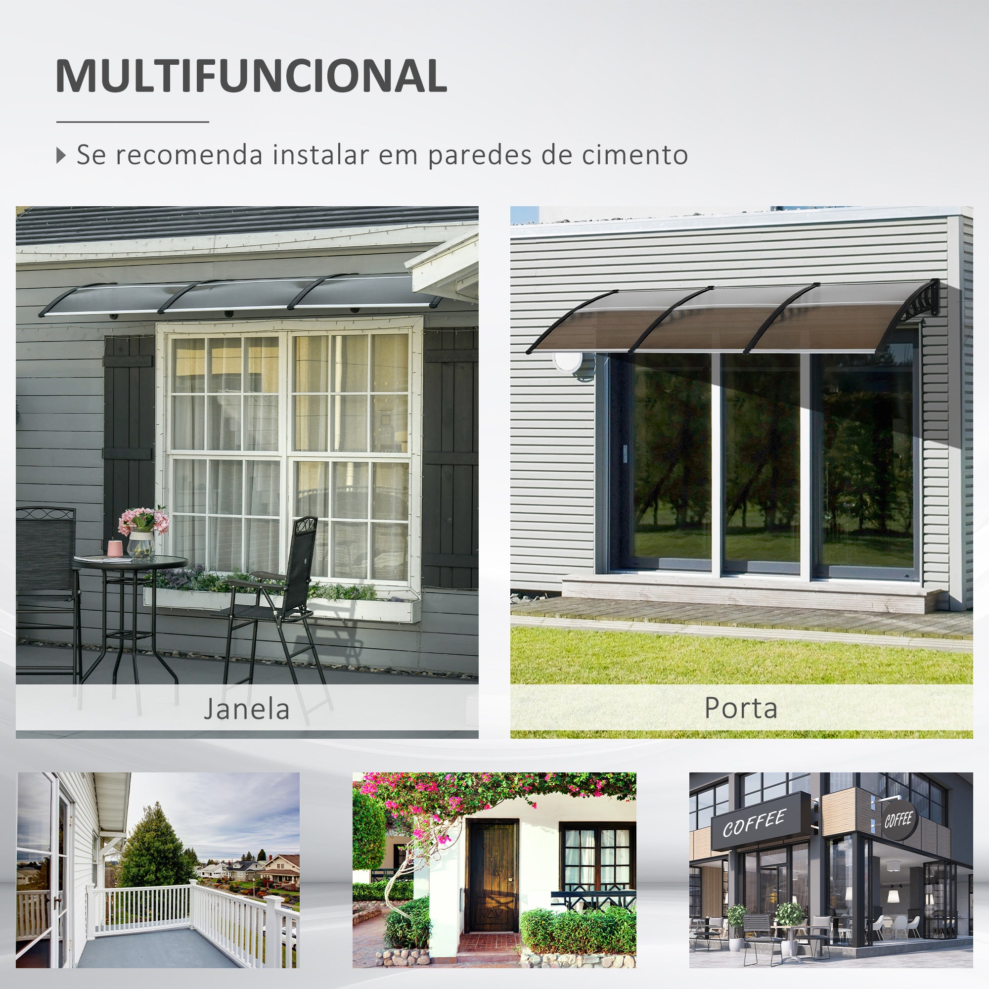 - PROTEÇÃO UV: Marquise de proteção, ideal para instalar em portas e janelas. Para proteger da chuva ou luz solar direta. Seu revestimento anti·UV reduz o superaquecimento em sua casa enquanto você pode continuar a aproveitar o brilho