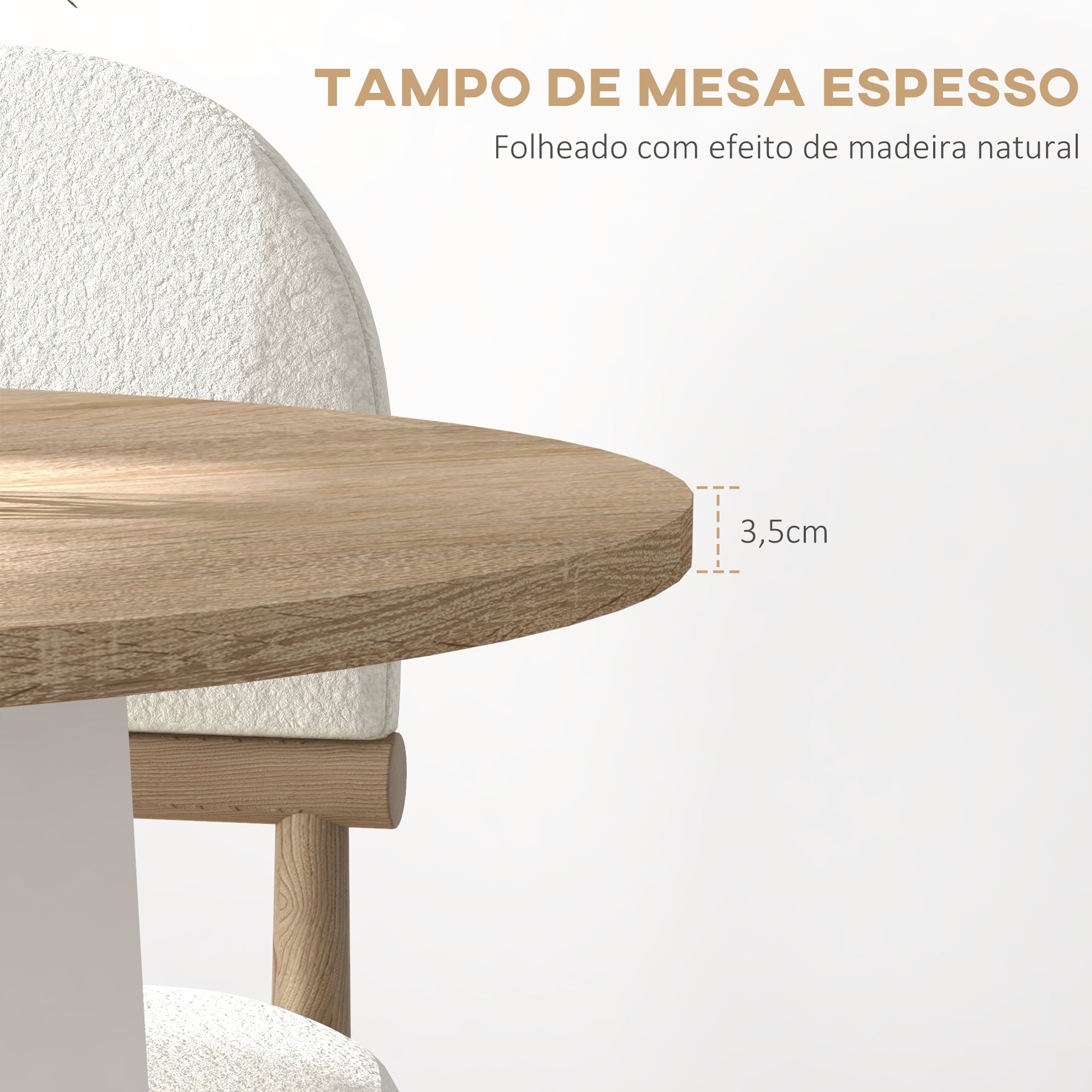 - MEDIDAS TOTAIS: Ø80x75 cm (DxA). Peso máximo suportado: 20 kg. Montagem necessária Desfrute das suas refeições com esta mesa da HOMCOM. Seu desenho redondo e elegante, com o contraste de materiais e tons, o tampo de melamina em acabamento de carvalho e a estrutura dos pés em metal branco, trazem um toque clássico e moderno a qualquer espaço. Sua estrutura de aço com revestimento em pó garante uma base firme e estável. Portanto, sente·se, relaxe e desfrute da companhia, onde quer que esteja