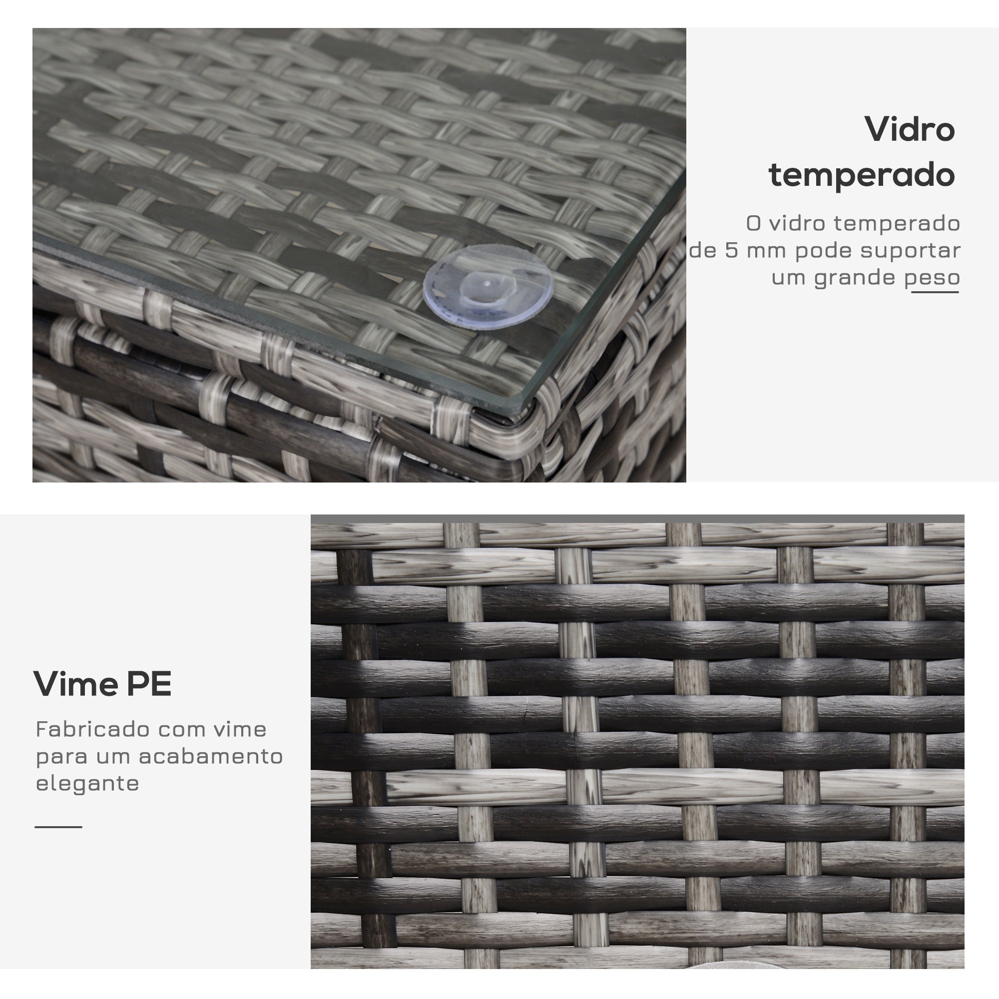 Mesa de Jardim em Vime Sintético Mesa Auxiliar com Vidro Temperado para Terraço Pátio, Varanda 85x50x39 cm Cinzento