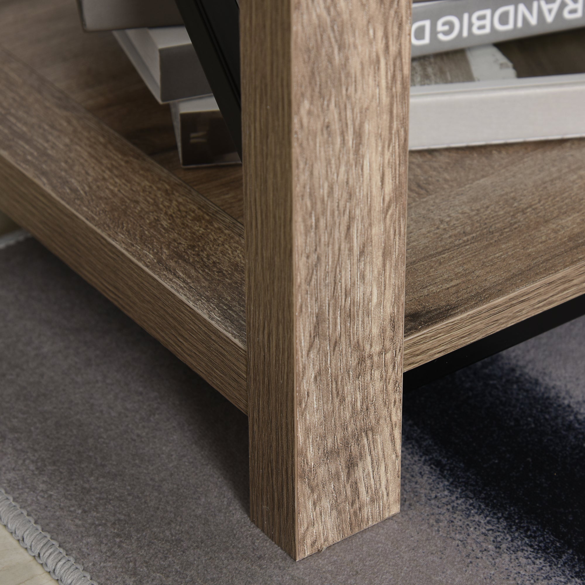 Mesa lateral de estilo colonial com prateleira inferior de armazenamento multifuncional Moldura em formato de X 40,5x40,5x60 cm Carvalho