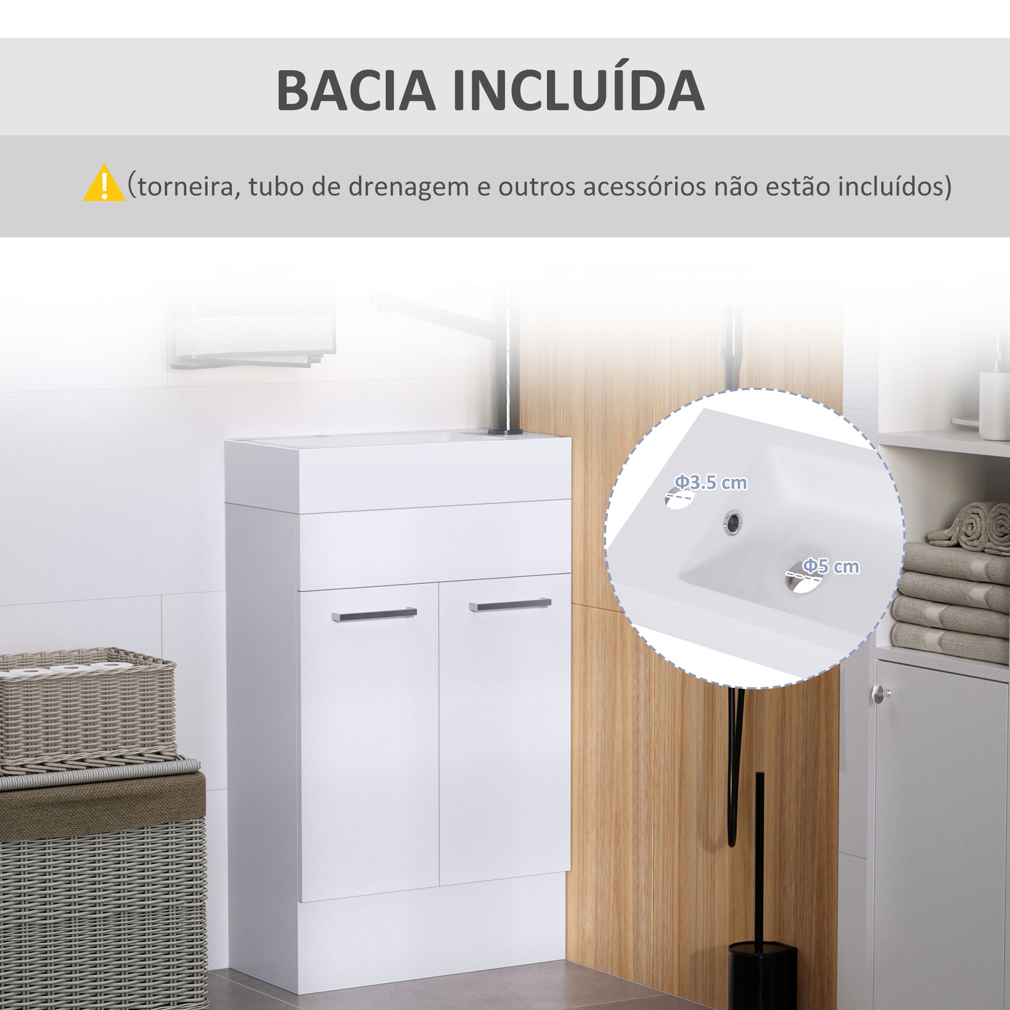 • Móvel de casa de banho composto por um lavatório e um armário de 2 portas Com orifício para a colocação da torneira (não incluída) Duas portas de fecho suave com elegantes puxadores de liga de zinco Grande espaço de armazenamento interior para produtos de higiene e limpeza Lavatório fornecido com um furo para torneira de tamanho padrão Desenho compacto ideal para espaços pequenos Requer montagem