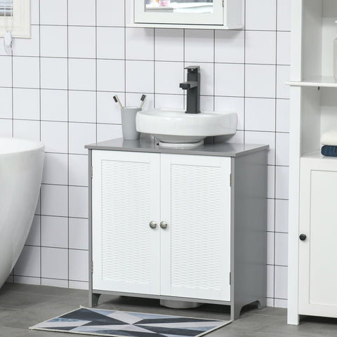 Armário de Casa de Banho por Baixo do Lavatório com 2 Portas e Prateleiras - Branco - 60x30x56cm