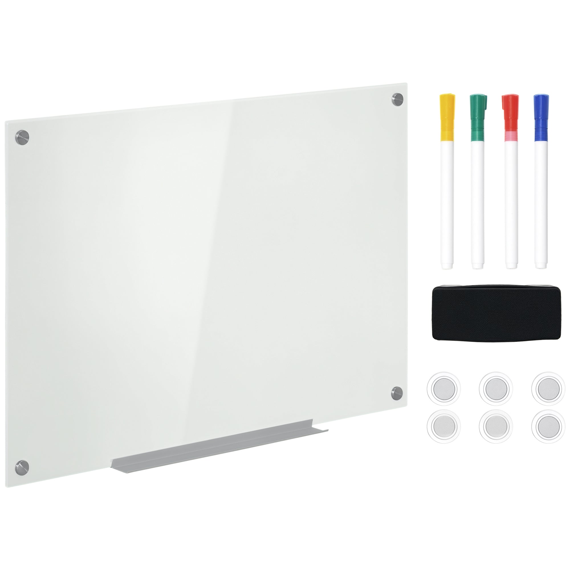 - MEDIDAS TOTAIS: 90x60x0,45 cm (CxLxA). Inclui 4 marcadores e uma borracha (não magnética). NOTA: Para a primeira vez que as canetas funcionarem, a ponta deve ser pressionada contra uma superfície lisa para permitir que a tinta escorra, caso contrário, eles não escreverão. Este quadro de vidro apagável da Vinsetto será o complemento perfeito no seu trabalho, estudo e casa. Adequado para escritório, escola, casa, estudo ou ambiente comercial. Por exemplo, você pode escrever diretamente o conteúdo de uma reunião no quadro branco para organizar e exibir ideias de maneira eficaz. Ou em sala de aula, esta placa fácil de limpar será uma grande conveniência. A placa de vidro é magnética, portanto você pode adicionar alguns pequenos ímãs se necessário (lembre-se que eles devem ser mais fortes que os das placas convencionais). Você vai adorar a facilidade de escrever e apagar.
