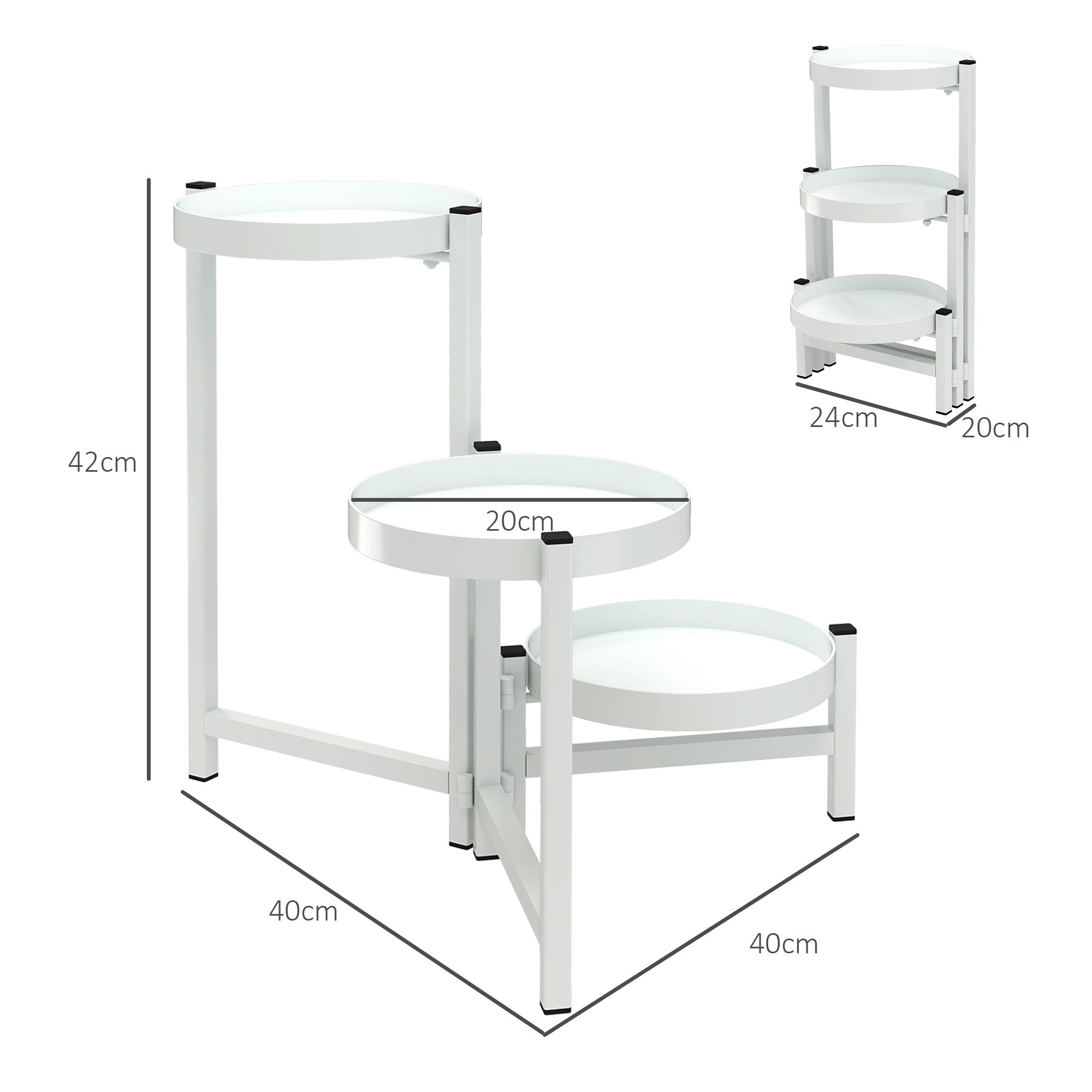 Suporte para Plantas Dobrável de 3 Níveis Suporte para Plantas de Metal com 3 Prateleiras Redondas Suporte para Vasos de Plantas para Interior e Exterior 40x40x42 cm Branco