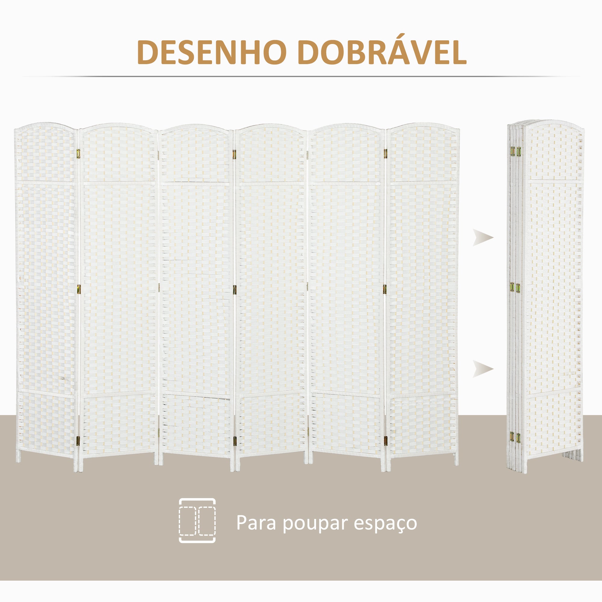 Biombo de 6 Painéis Separador de Ambientes Dobrável 240x170 cm Biombo Separador de Ambientes para Sala de Estar Dormitório Escritório Branco