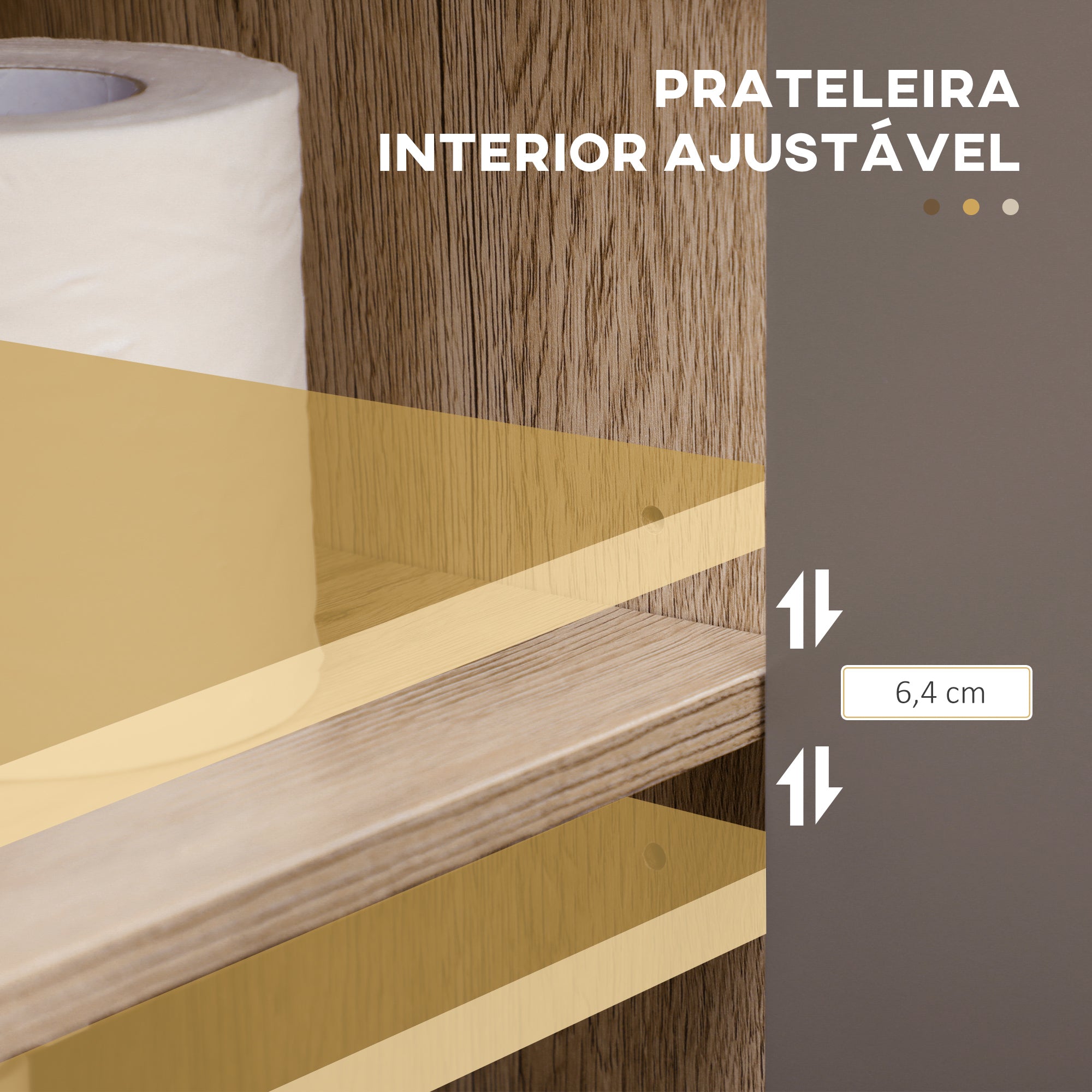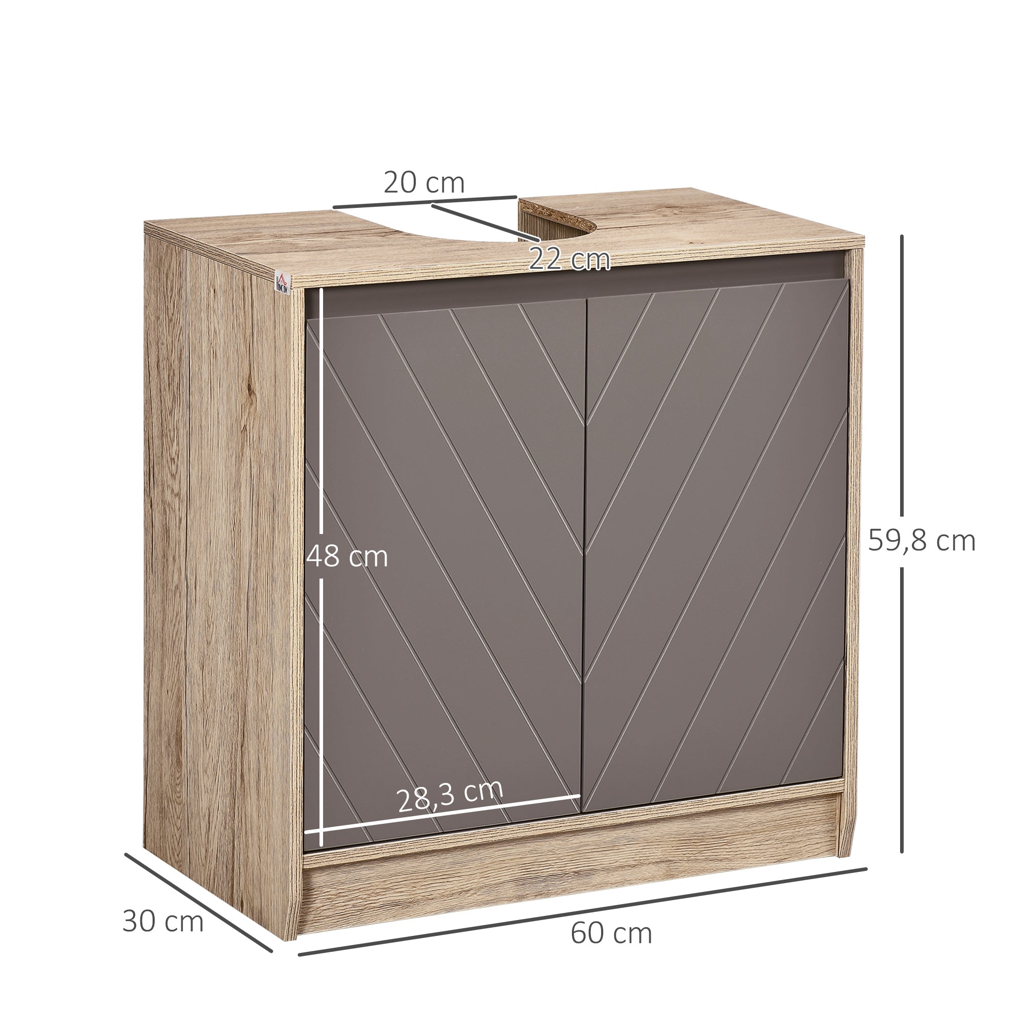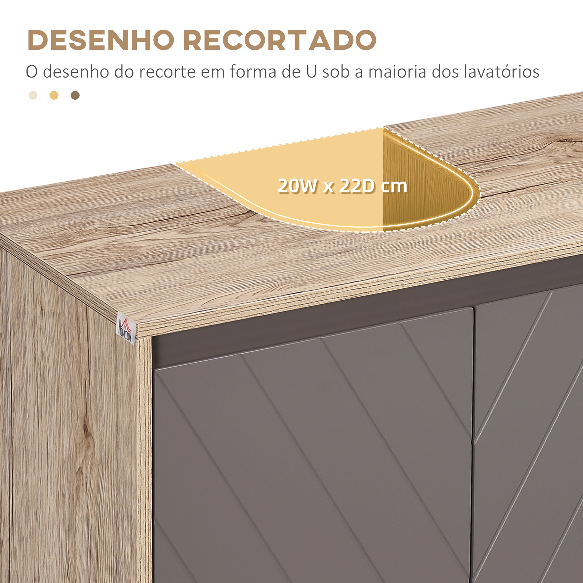 Móvel para Lavatório Casa de Banho Móvel Casa de Banho com Porta Dupla e Prateleira Ajustável Carga 50kg 60x30x59,8 cm Carvalho e Cinza