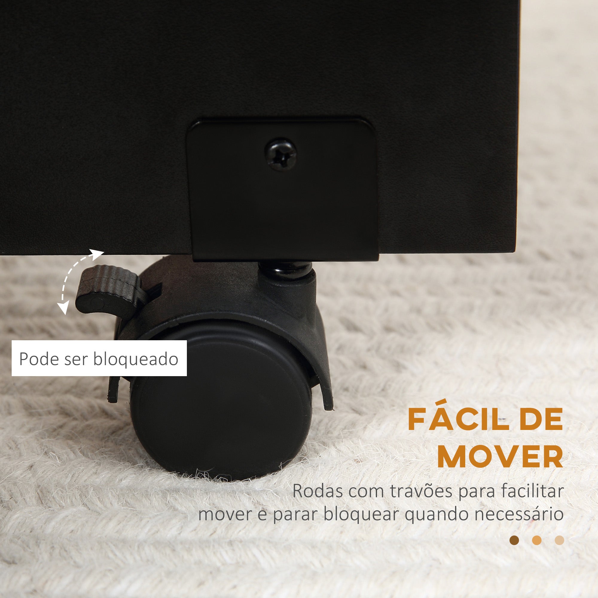 - 2 PRATELEIRAS E 2 RODAS: Esta mesa lateral possui 2 prateleiras no centro que proporcionam espaço de armazenamento extra, protegidas pelas abas laterais quando dobradas. As 2 rodas com travões permitem abrir facilmente as asas e mantê·las estáveis na posição