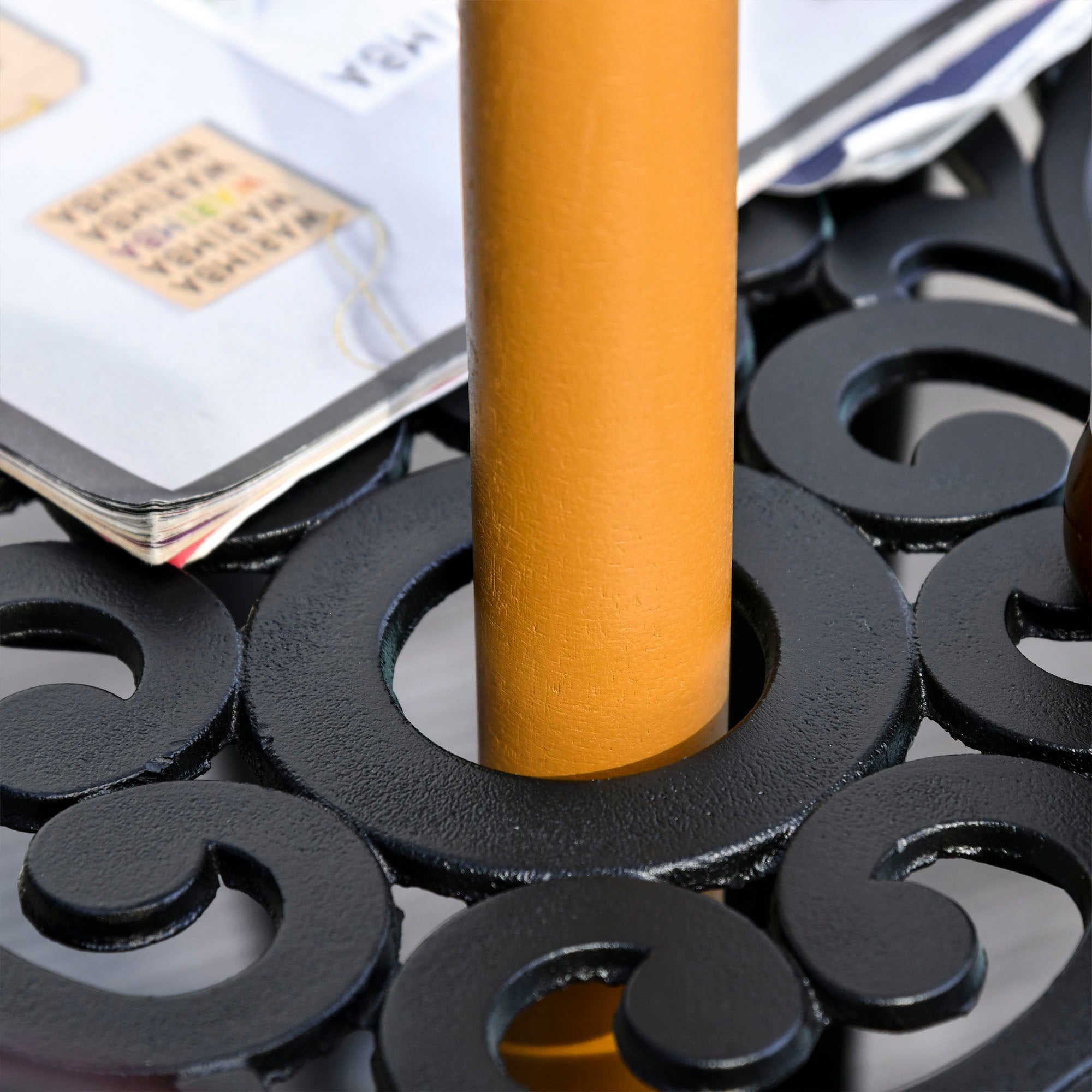 Chapéu de Sol de Madeira Ø250x230 cm para Exterior com 6 Hastes Sistema de Corda com Fixação Desmontável Portátil Fácil de Guardar e Transportar Preto