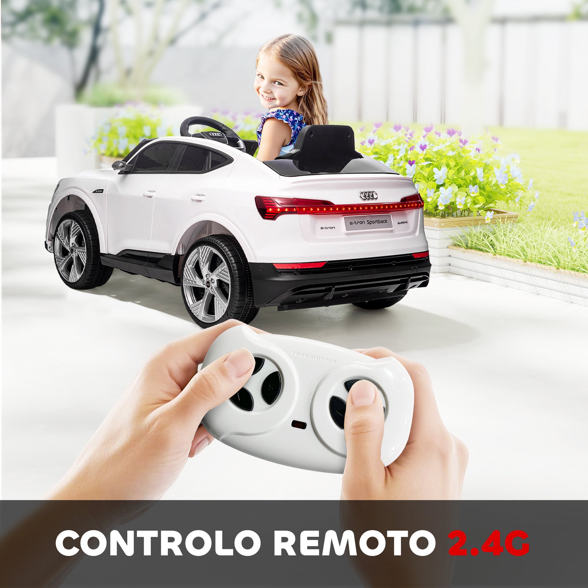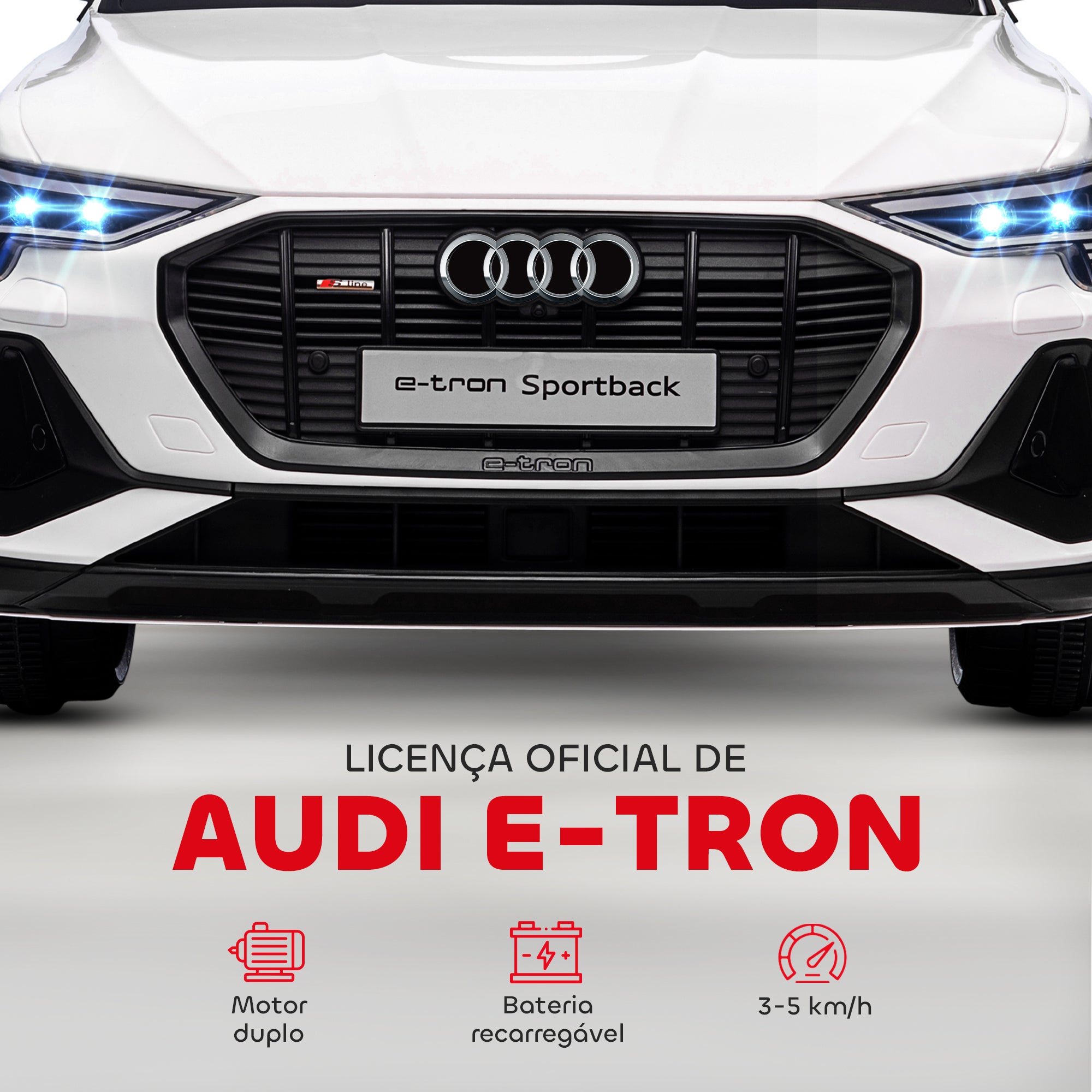 Carro Elétrico Audi E-Tron 12V para Crianças acima de 3 Anos com Controle Remoto Faróis Buzina Música MP3 TF USB e Abertura da Porta 3-8km/h 108x60x47cm Branco