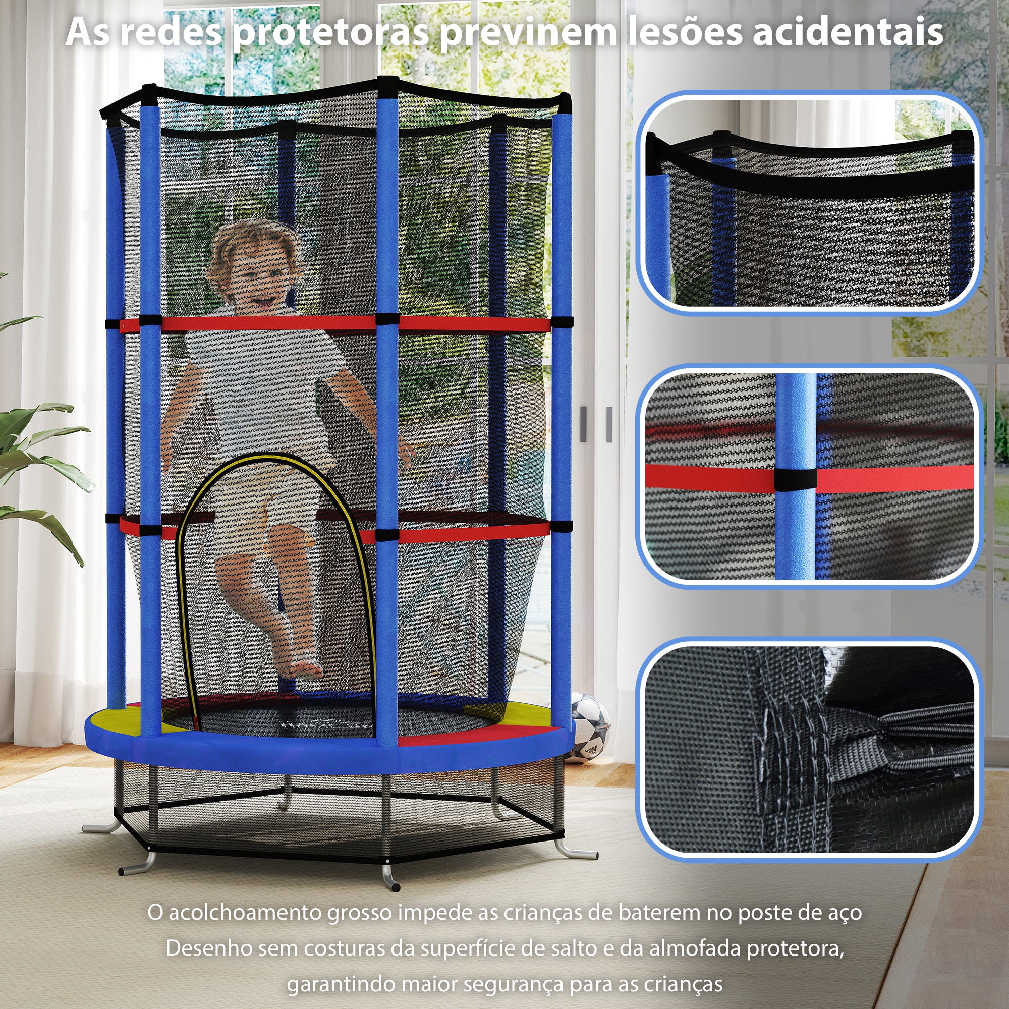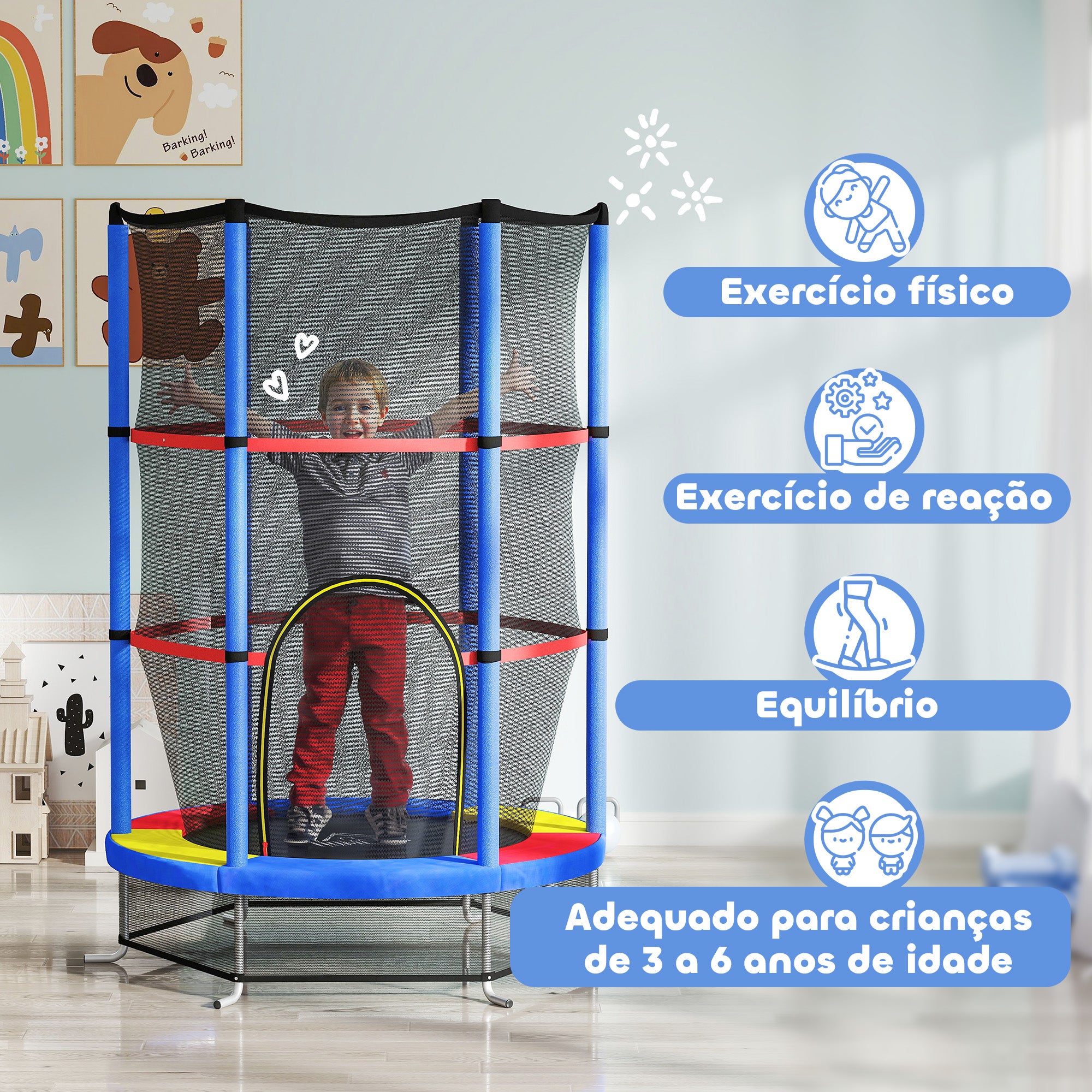 Trampolim Infantil Ø107 cm Trampolim para Crianças de 3-6 Anos com Rede de Segurança Carga 45 kg para Interior Ø140x160 cm Azul