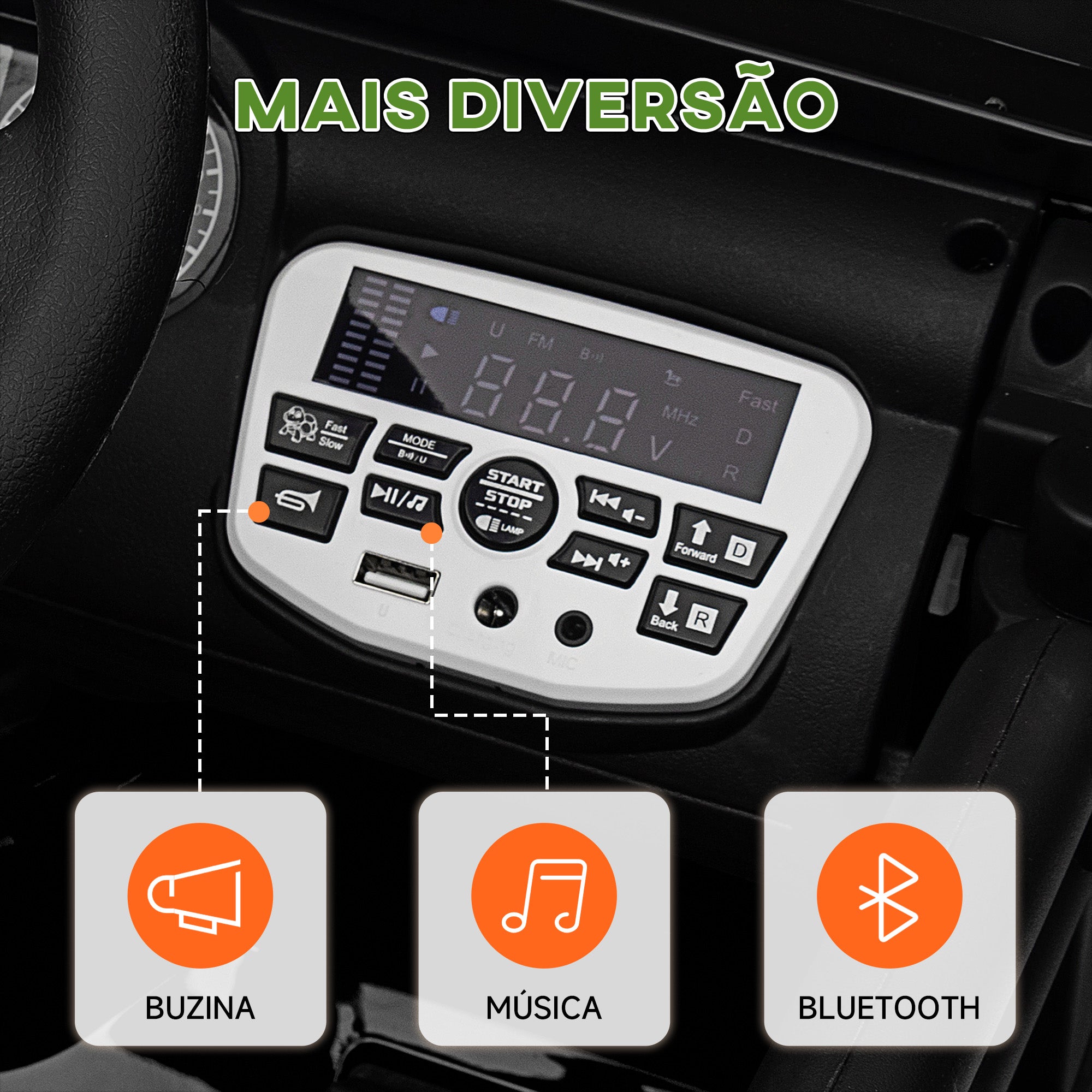 • MÁXIMA DIVERSÃO: Equipado com bluetooth integrado, permitindo que as crianças escutem as suas músicas favoritas enquanto dirigem. Além disso, possui buzina e faróis, oferecendo uma experiência de condução ainda mais divertida e realista