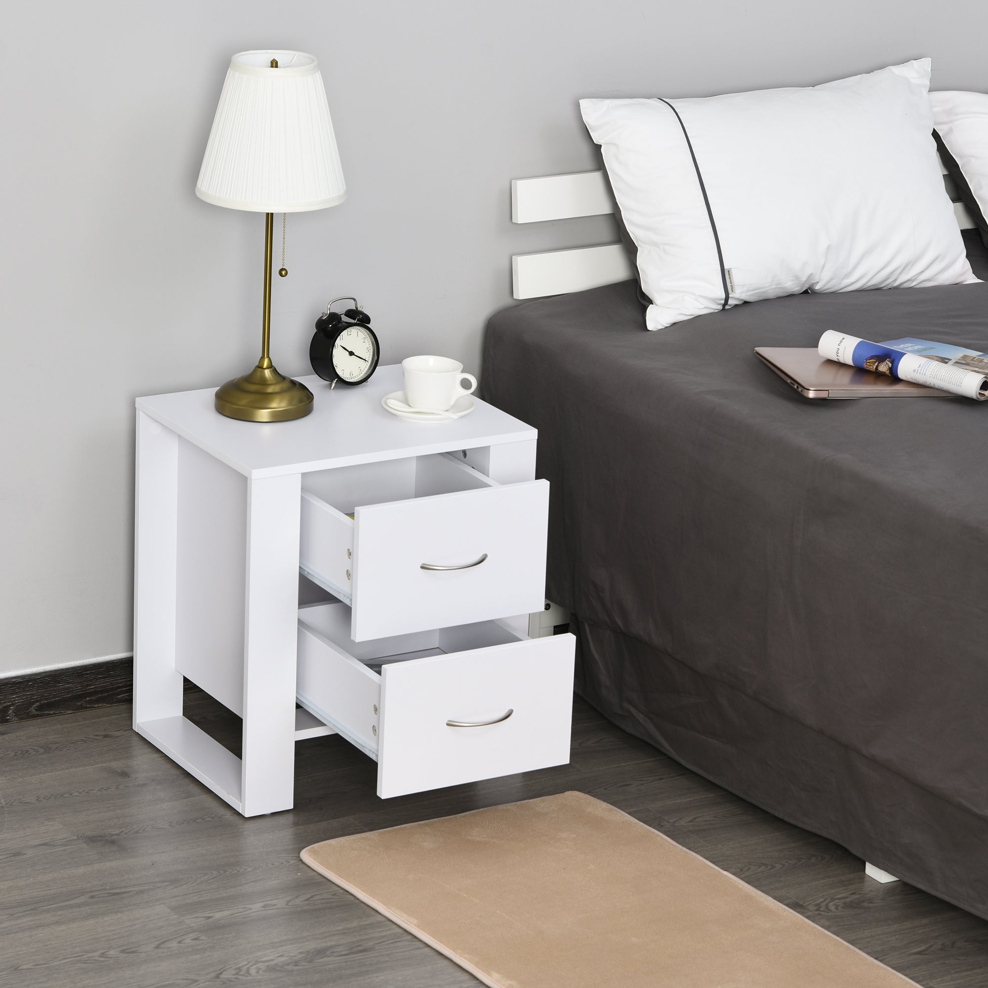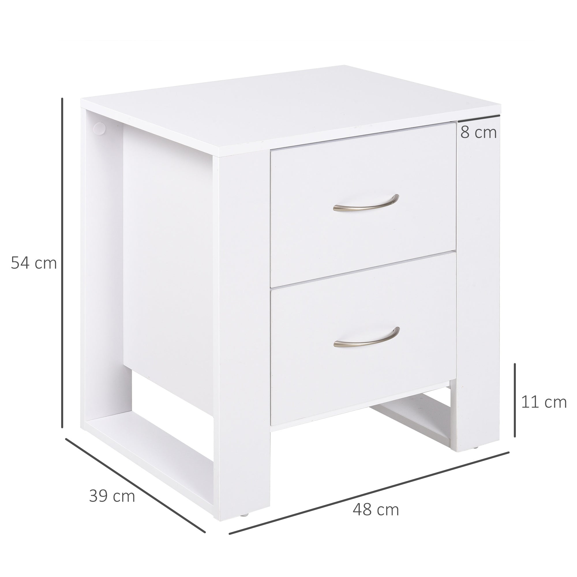 - MEDIDAS: 48x39x54 cm (CxLxA). Suporta um total máximo de 30 kg. Esta mesa lateral HOMCOM é ideal para armazenar tudo o que você precisa ter ao lado da sua cama. É uma grande mesa de cabeceira, graças às duas gavetas, que oferecem espaço para guardar seu pijama ou o que você quiser. Suas pernas levantadas tornam a limpeza do chão uma tarefa rápida e fácil. Além disso, seu estilo sofisticado dará um toque muito elegante ao seu quarto. Não perca esta mesa de cabeceira fantástica!