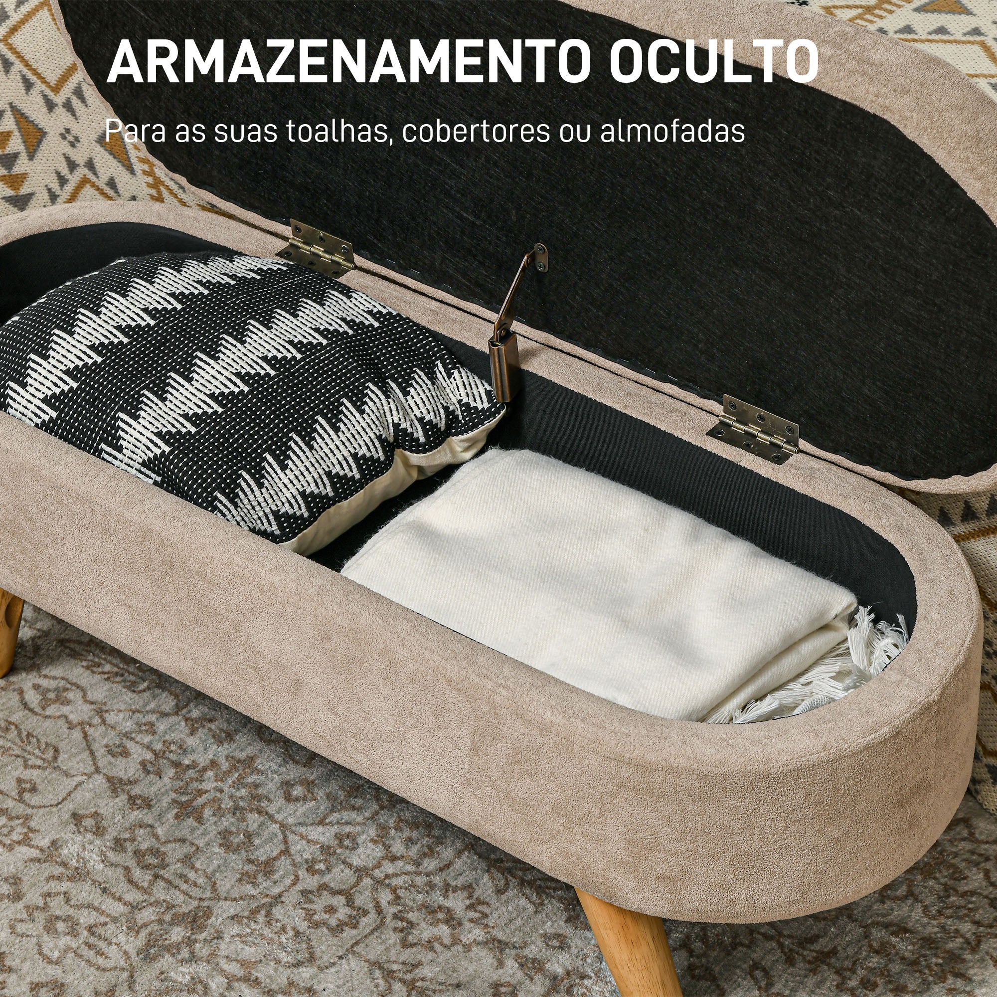 Banco para Pé de Cama Banco de Armazenamento com Pés de Madeira e Assento Acolchoado Carga 120 kg Puff de Armazenamento para Dormitório Entrada Corredor 110x40x43 cm Bege