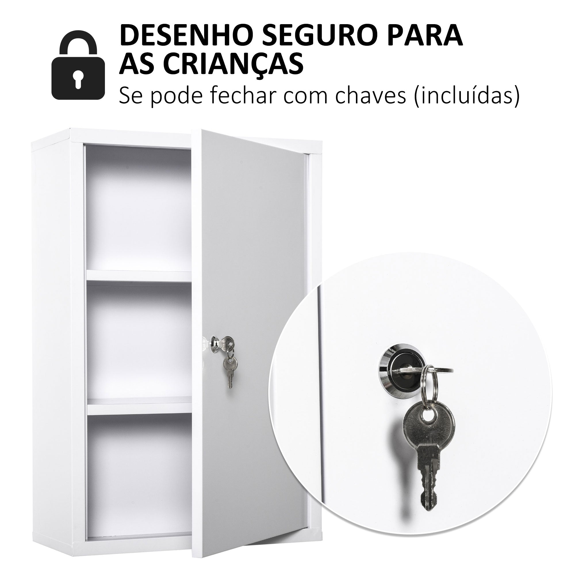 - Armário farmácia com fechadura de segurança (com 2 chaves incluídas), ideal para casas com crianças e animais de estimação