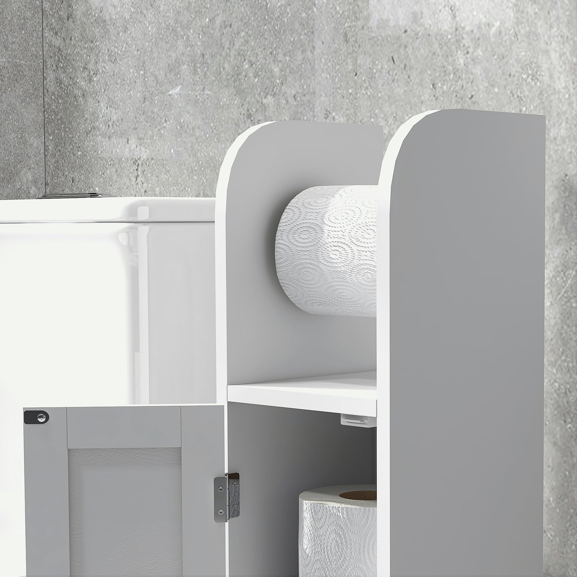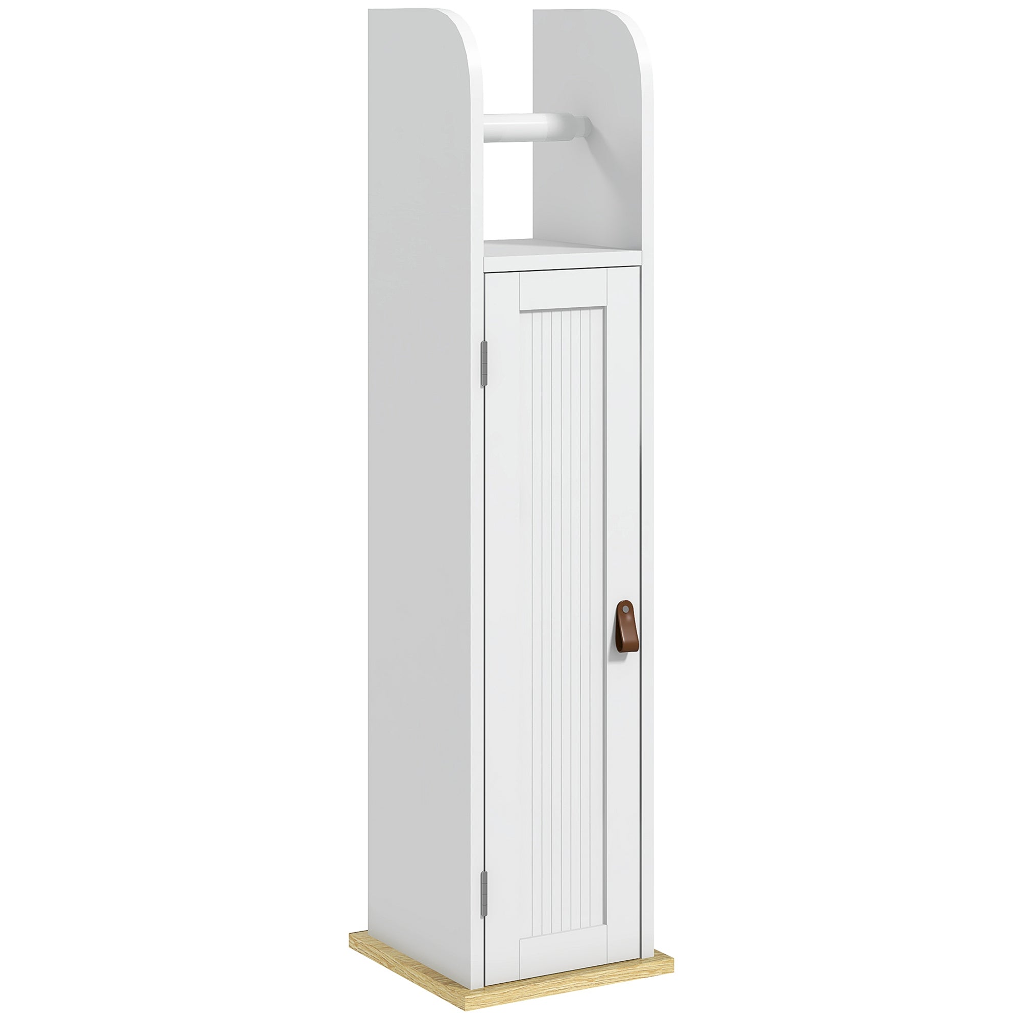 Armário Casa de Banho Armário Auxiliar Casa de Banho com Prateleiras Ajustáveis e Suporte para Papel Higiénico 20x20x80 cm Branco