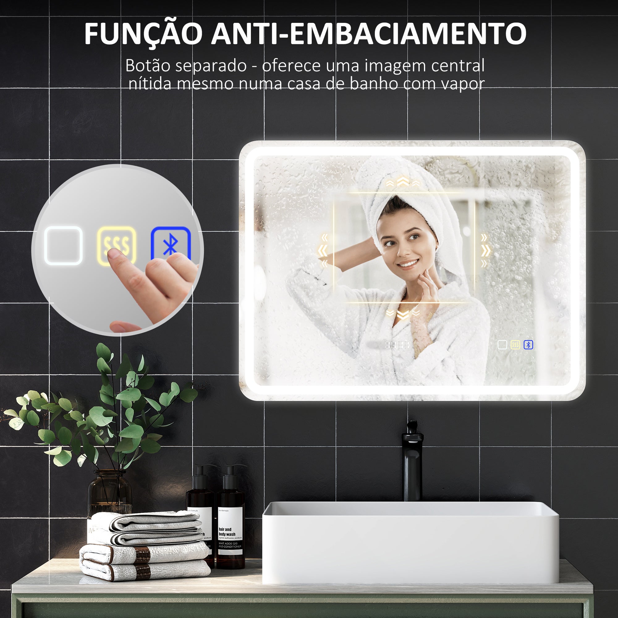 - ANTIEMBACIAMENTO E CLASSIFICAÇÃO IP44: A função antiembaciamento mantém este espelho para casa de banho limpo durante o banho, enquanto a certificação IP44 garante resistência à água e ao pó, tornando·o perfeito para qualquer casa de banho
