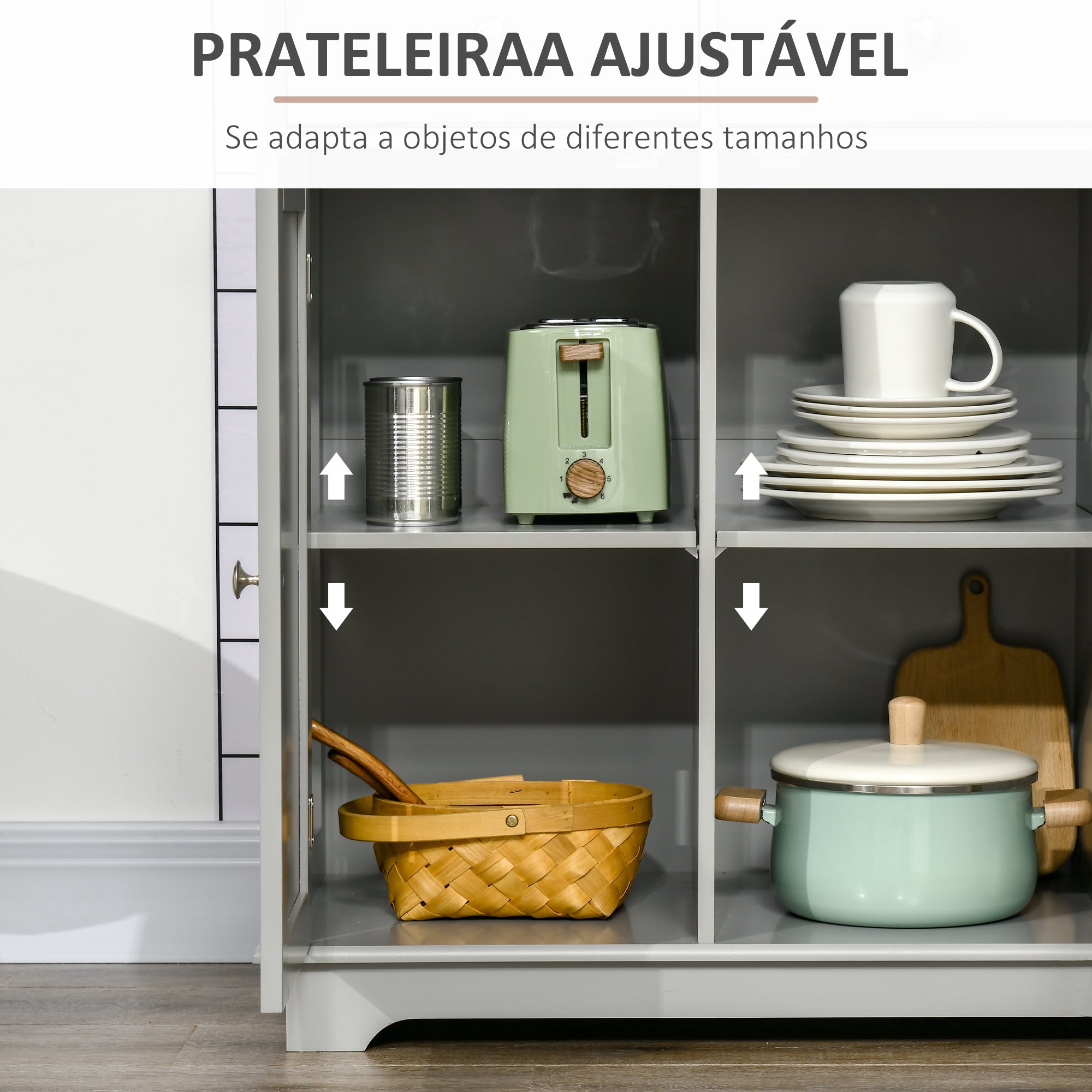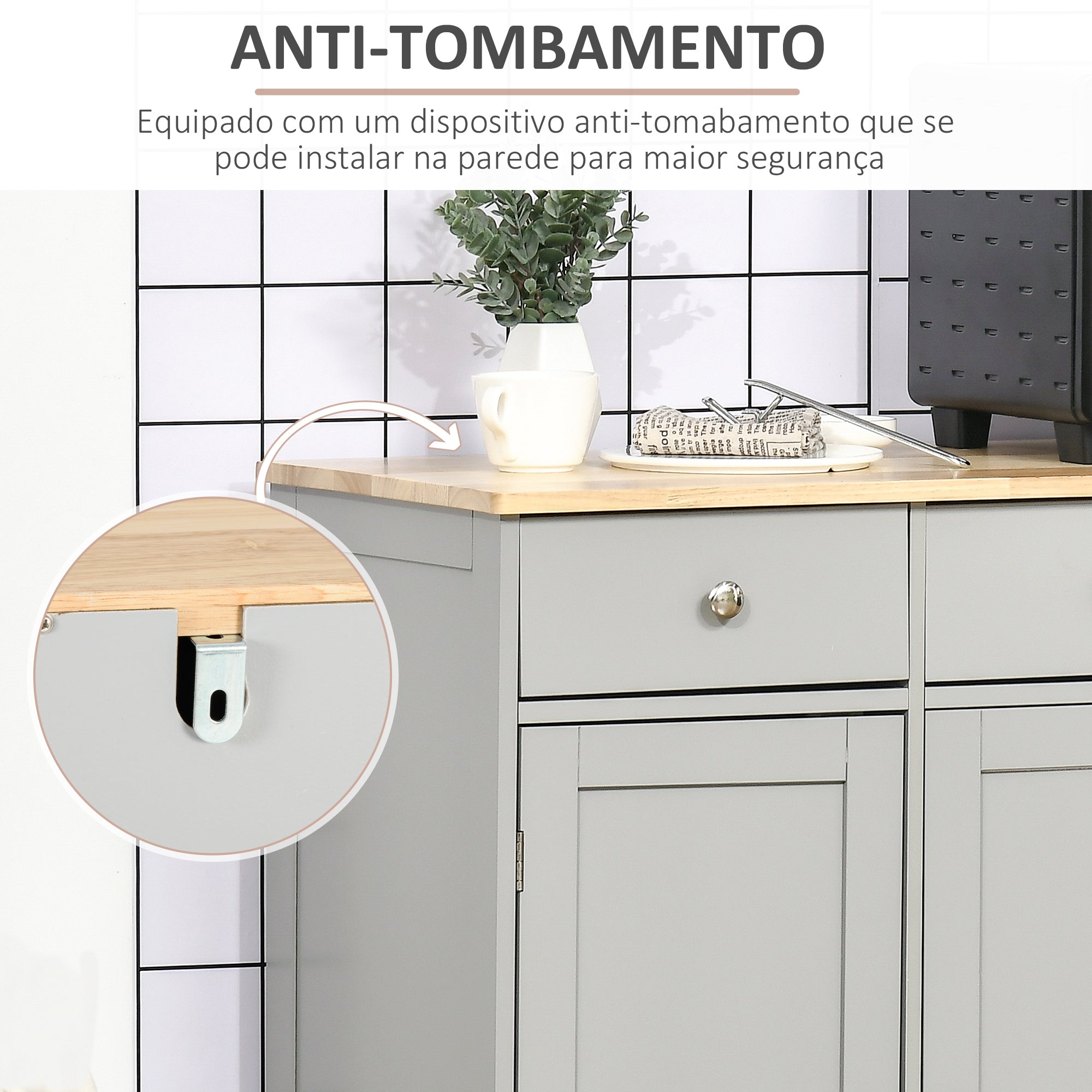Aparador de Cozinha com 3 Gavetas 3 Portas e Prateleiras Ajustáveis Móvel Auxiliar de Armazenamento para Cozinha Sala de Estar Estilo Moderno Anti-Rolamento 101x40x85 cm Cinzento