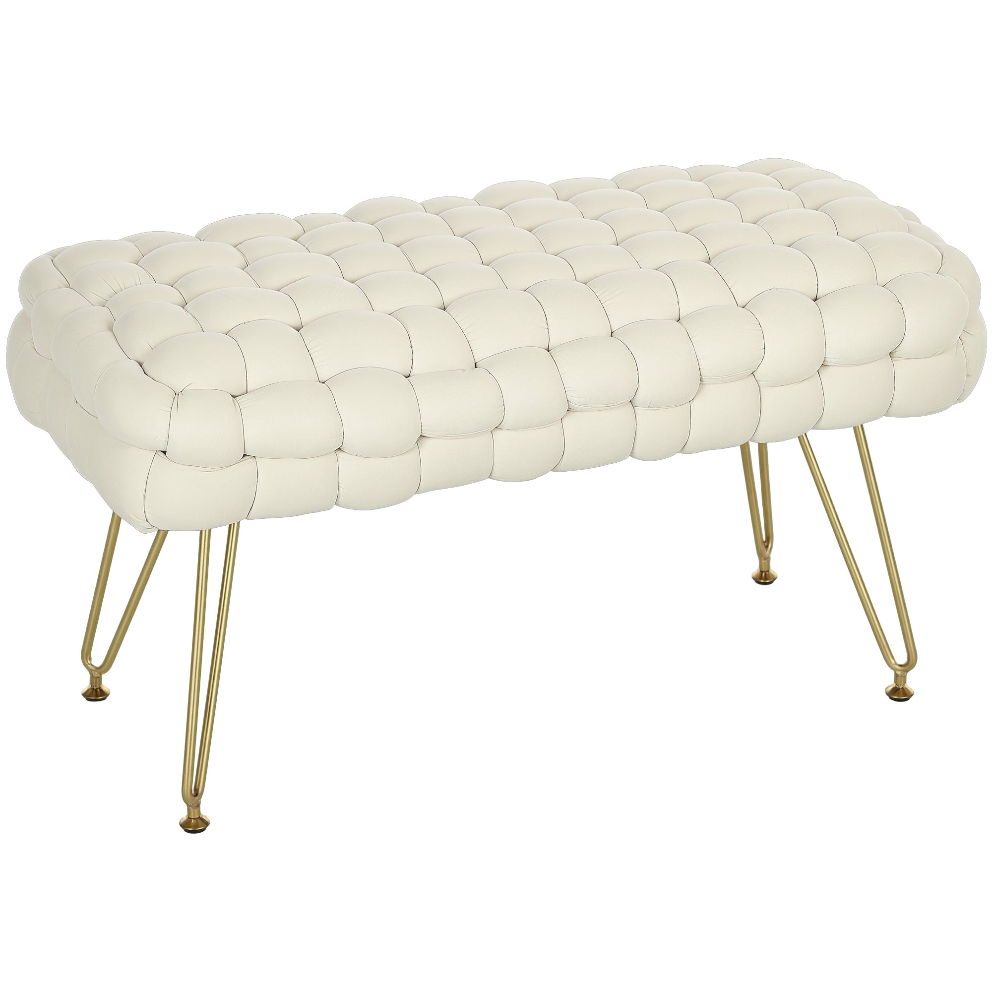 Apoio para os Pés Sala de Estar Apoio para os Pés em Veludo com Pés de Metal e Assento Acolchoado para Dormitório Entrada 76x38x41,5 cm Creme