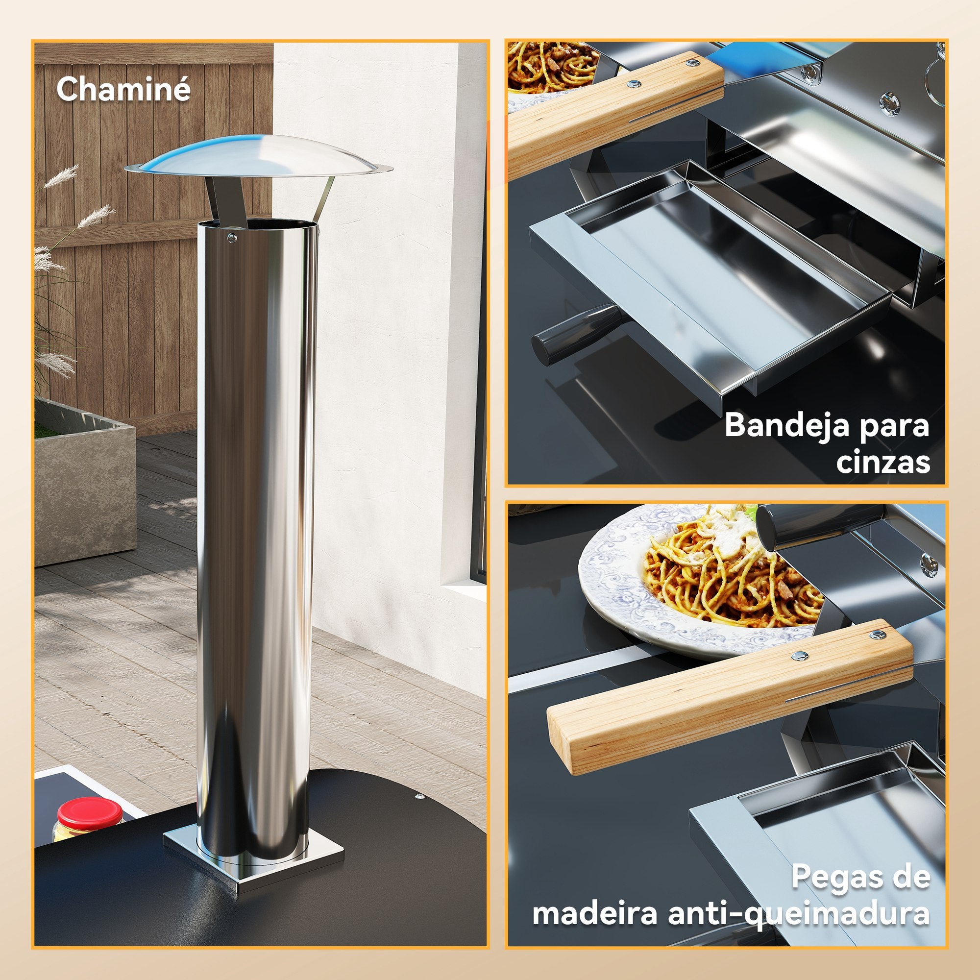 • MEDIDAS E DESENHO COMPACTO: Com um tamanho de 84x47x82 cm, este forno é ideal para exteriores e fácil de transportar. Leve·o para o jardim, para o parque ou até para acampamentos para desfrutar de pizzas caseiras com um toque profissional onde quiser O pacote inclui: