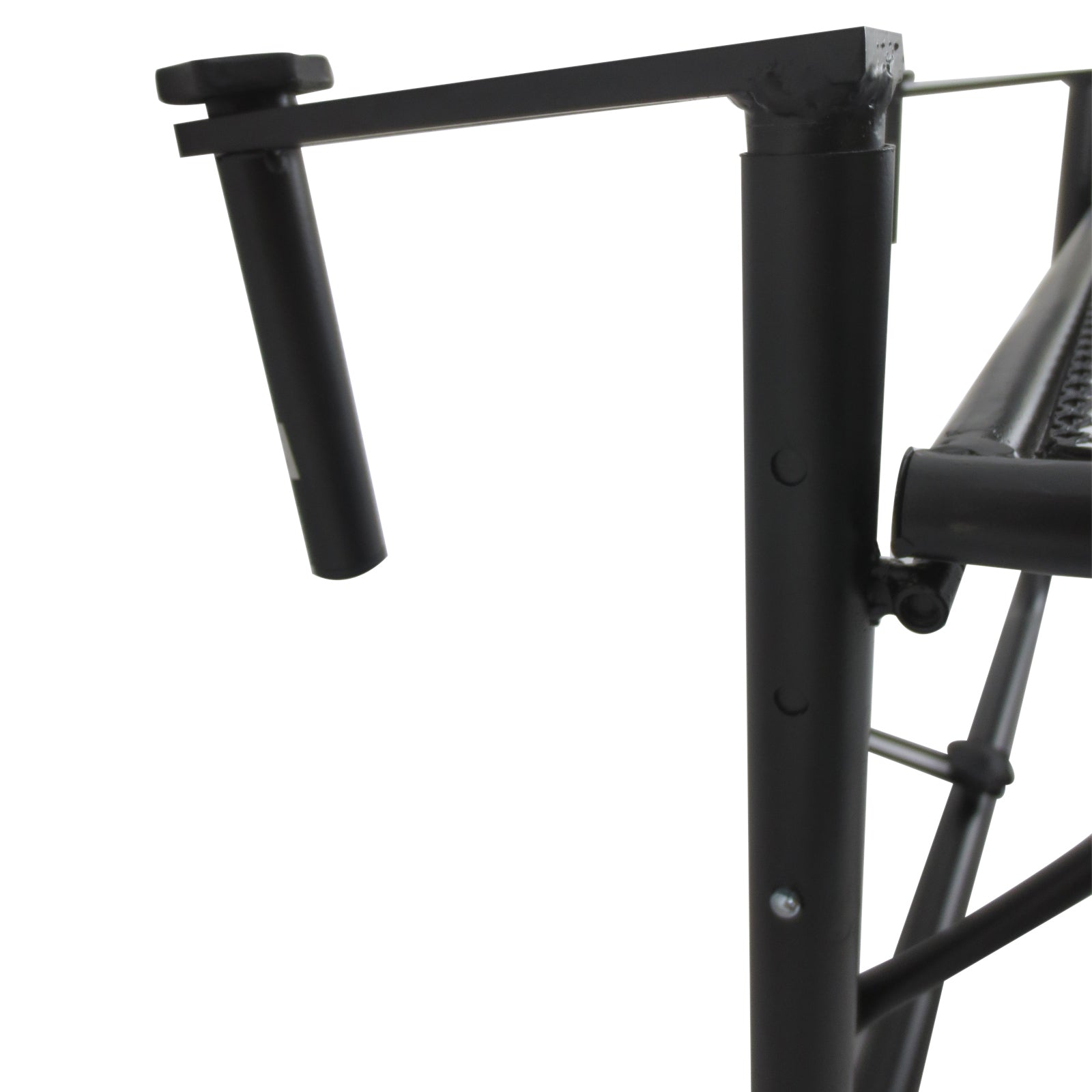 • Mesa dobrável de metal de alta qualidade. Superfície lisa na cor preta estável e resistente a rachaduras.