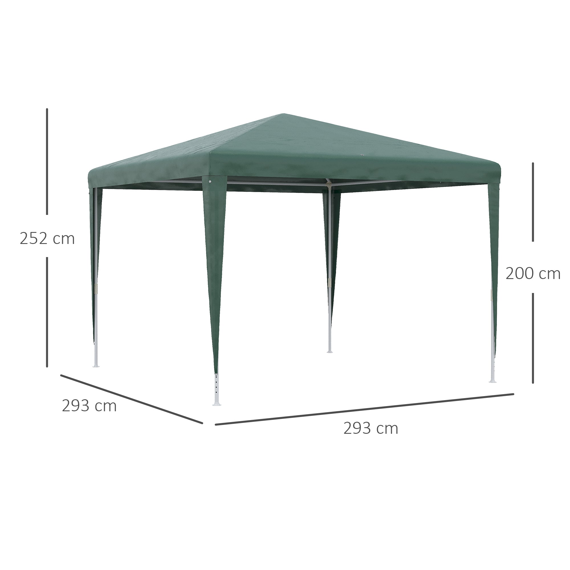 - MEDIDAS TOTAIS: 293x293x252 cm (CxLxA). Altura do beiral: 200 cm. NOTA: Não é recomendado a utilização em condições climáticas adversas. Requer montagem Está a procurar uma tenda que é fácil de montar e desmontar para o seu jardim? Esta tenda da Outsunny é ideal para atividades ao ar livre, fácil de mover, armazenar, montar e desmontar. Fabricada com tubos de aço e toldo de PE, é uma tenda resistente e ideal para uma utilização prolongada. Nela você pode organizar festas, aniversários, jantares, feiras e muito mais, sem temer que o tempo estrague seus planos. Aproveite melhor o seu espaço exterior com esta incrível tenda!