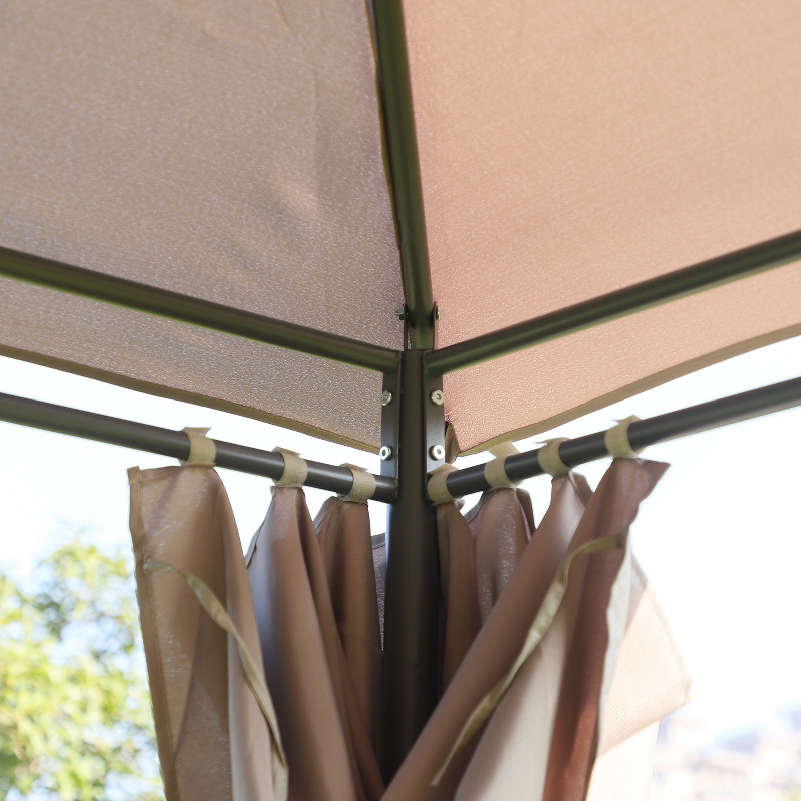 - TETO RESISTENTE AO CLIMA: O teto em tecido de poliéster com revestimento em PA desta pérgola oferece uma máxima proteção, protegendo seus convidados da luz solar direta e chuva leve da maneira mais eficaz. Além disso, possui 8 orifícios de drenagem para evitar o acumulo de água