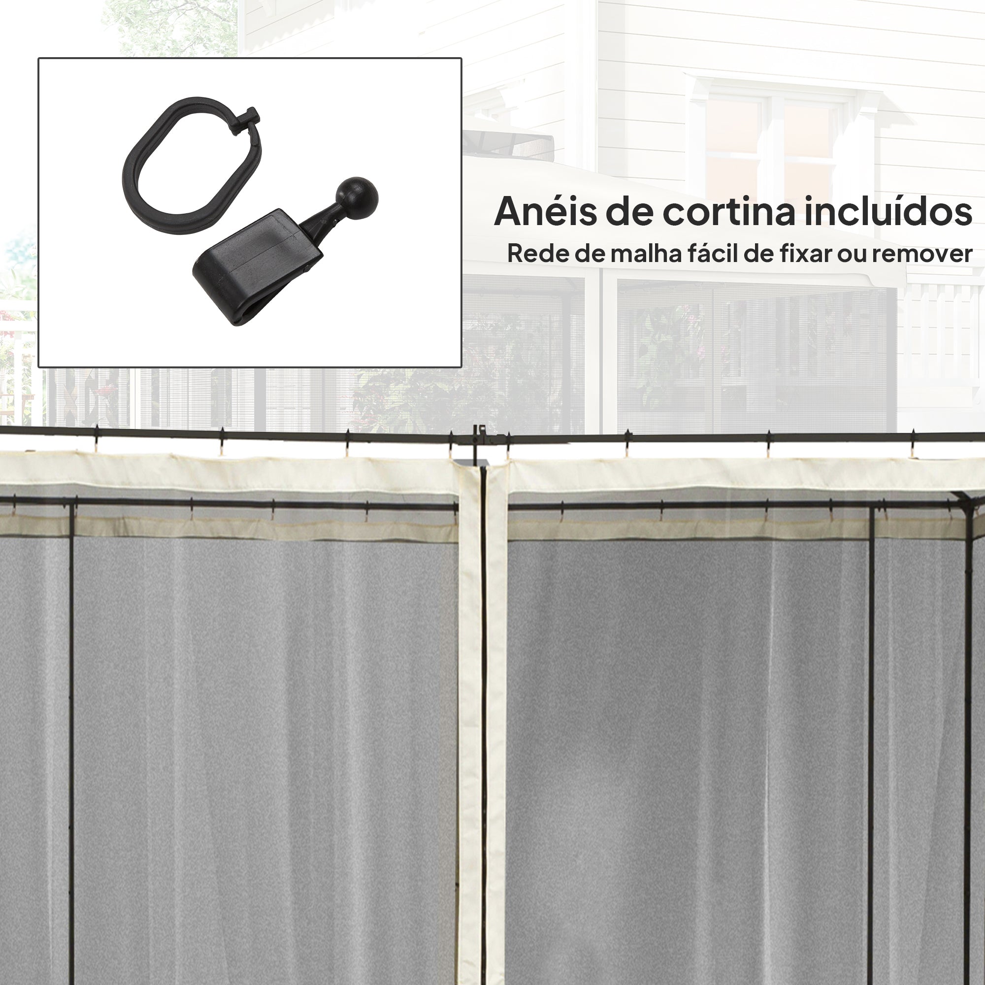 4 Painéis Laterais 302x207 cm para Tenda de Jardim Mosquiteira para Gazebo com Zíperes e Anéis Pretos