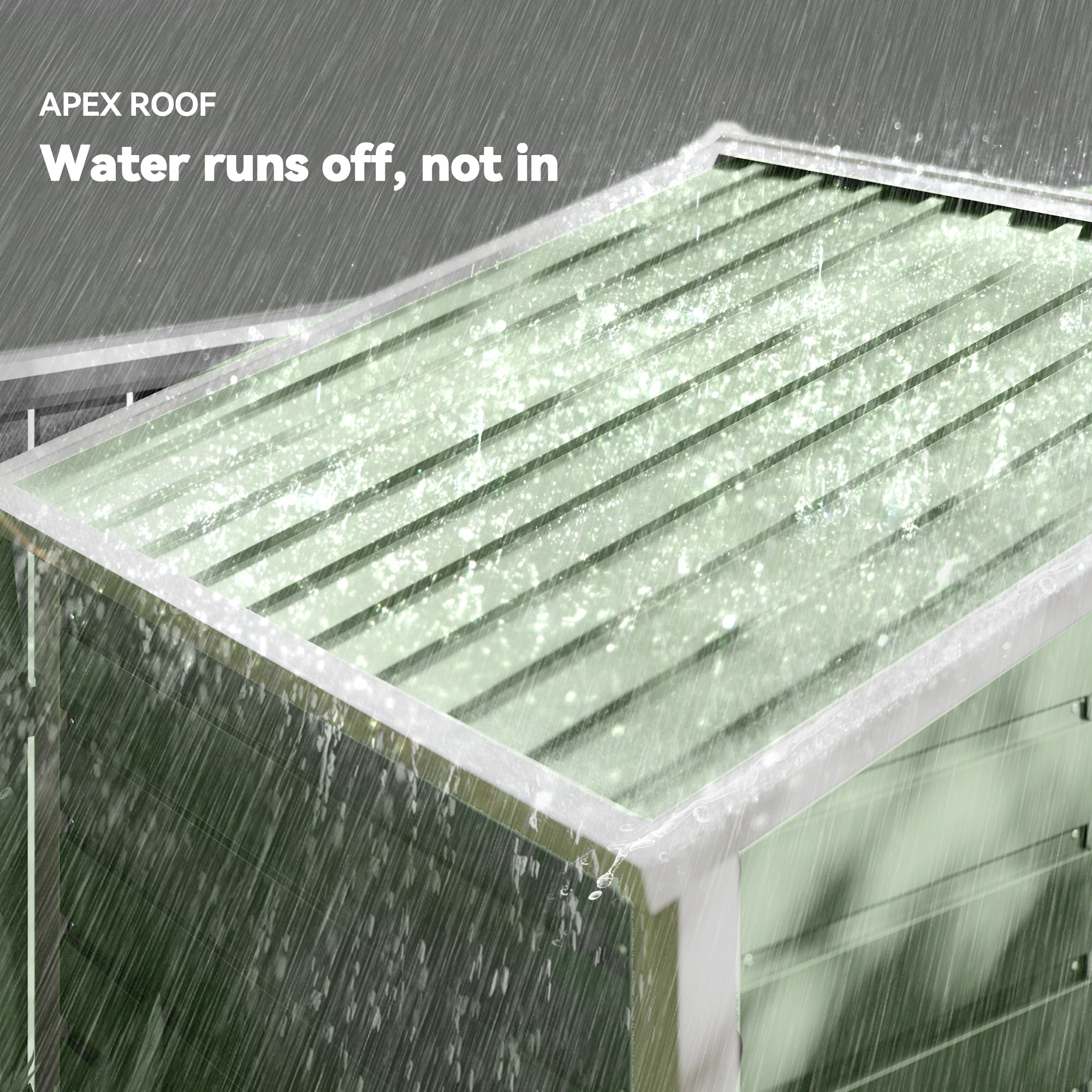 • SISTEMA DE VENTILAÇÃO EFICIENTE: Este abrigo de jardim está desenhado com quatro janelas de ventilação, dois na parte da frente e dois na parte de trás, juntamente com um teto de duas águas que evita o acumulo de água e neve, mantendo·o seco e bem ventilado