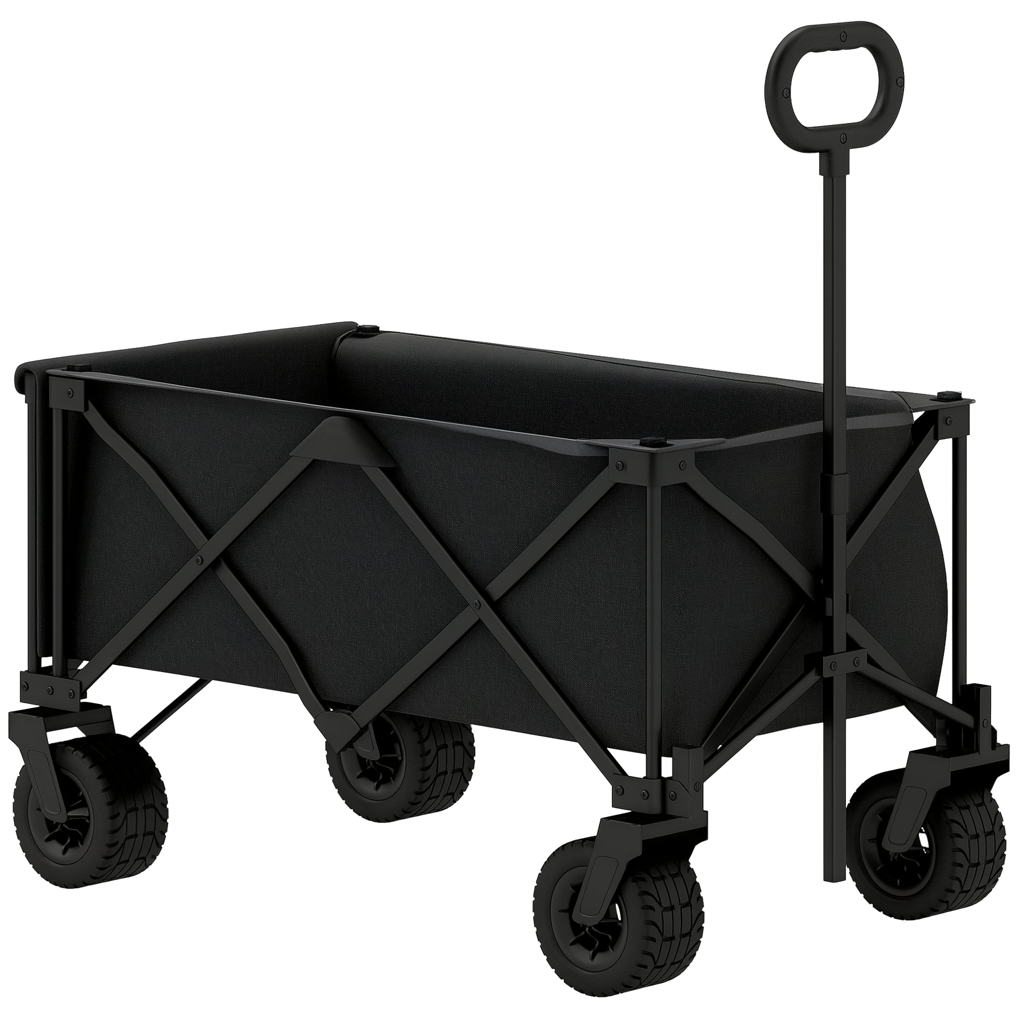Carrinho de Praia com Rodas Grandes Carrinho de Jardim Dobrável com Puxador Ajustável Porta Traseira Expansível Capacidade 100 kg 90x48x92 cm Preto
