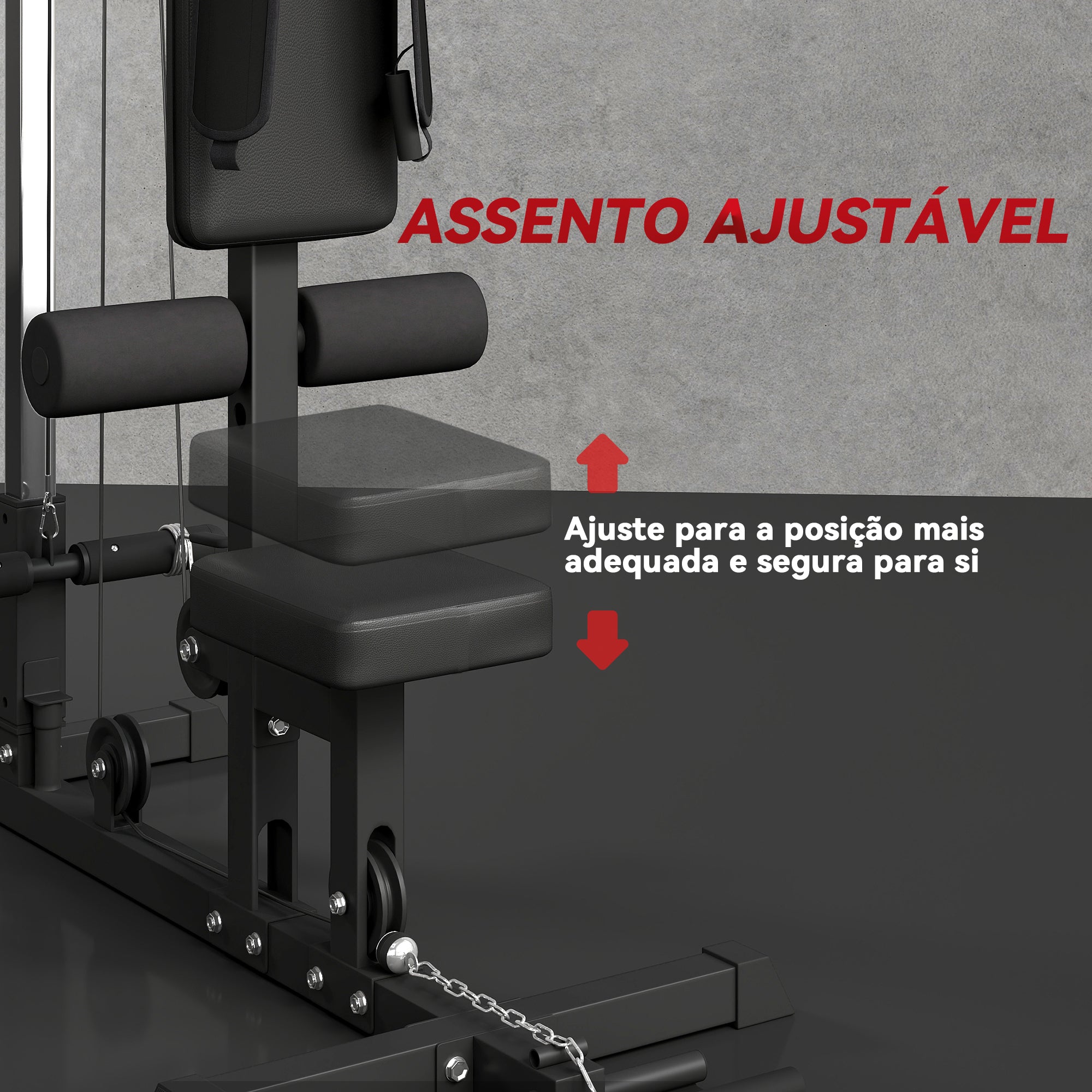 Máquina de Musculação Estação de Treino com Assento Ajustável para Treino em Ginásio Casa Escritório Carga Máxima 100 kg 140x108x197 cm Preto