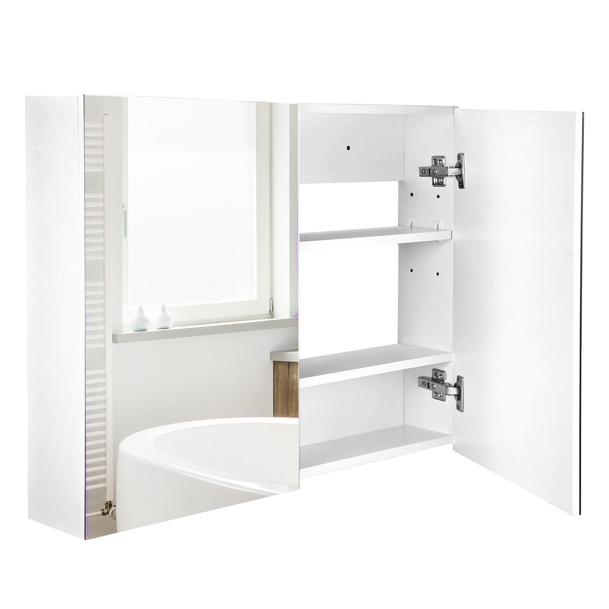 - PORTA DUPLA COM ESPELHO: Armário de banheiro com prateleira interna para manter todos os seus produtos de higiene essenciais organizados e à mão. Suas duas portas, com espelhos, vão facilitar o seu dia a dia, penteado, barbear ou maquiagem.
