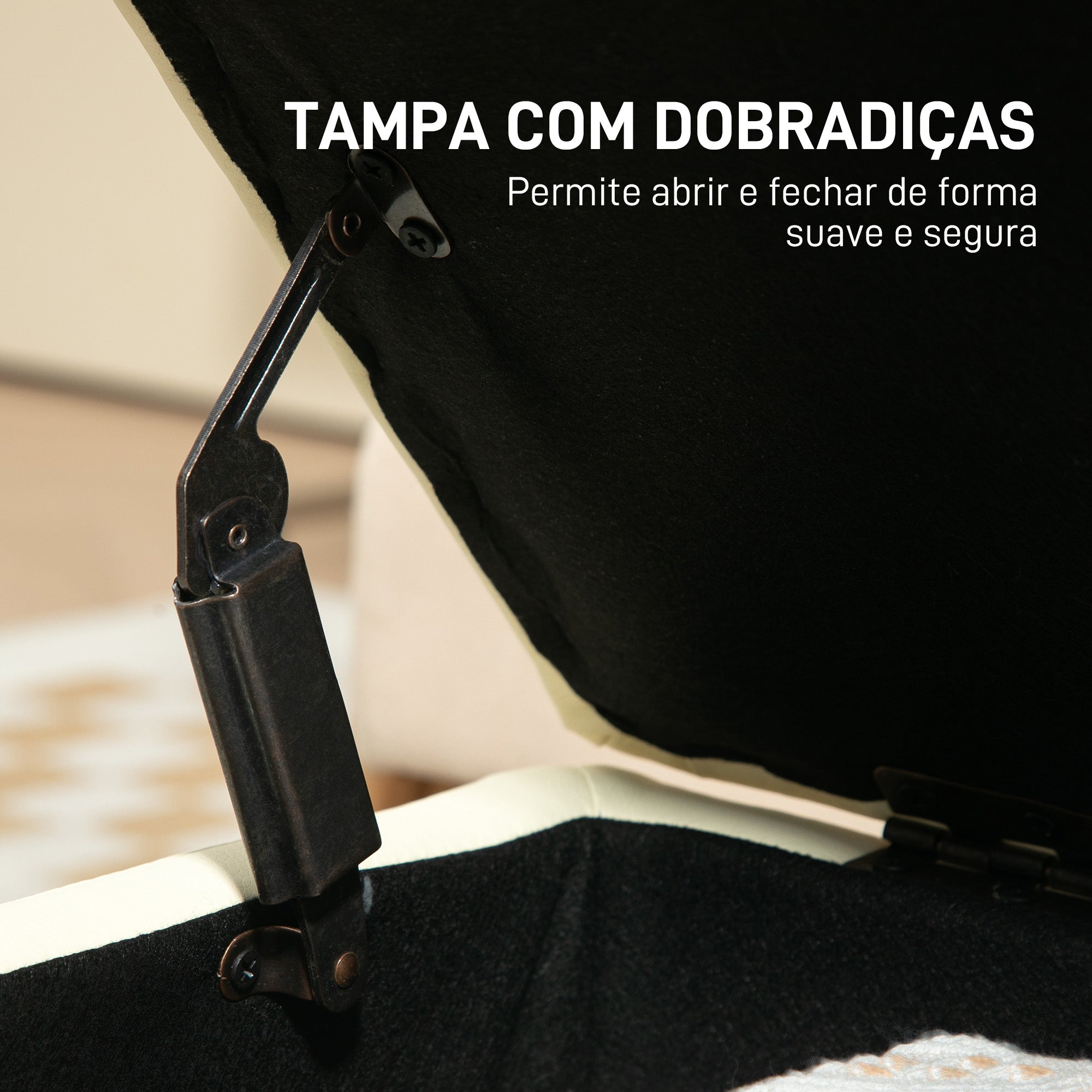 - Banco otomano de arrumação com capacidade para 33L Ideal para manter os seus objetos sempre organizados e fora da vista Estofado em um agradável tecido de couro PU, fácil de limpar com um pano húmido O desenho tufado acrescenta um toque elegante a qualquer ambiente Fabricado em placa multicamada resistente, ideal para uma utilização prolongada Os pés em madeira de borracha proporcionam maior estabilidade Pode ser utilizado como banco de arrumação, apoio para os pés, banco de pé de cama, entre outros Requer uma montagem simples