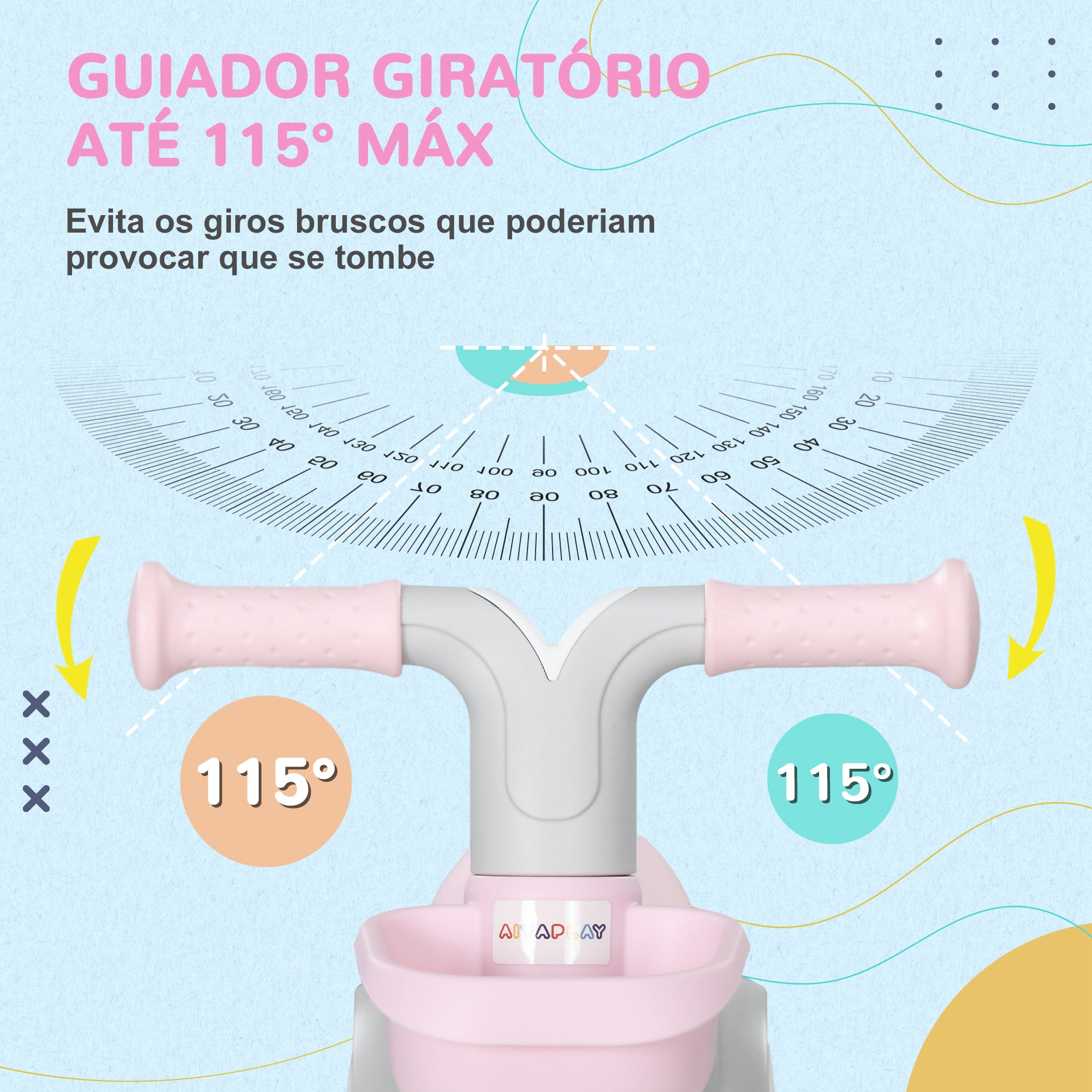 - Cor: Rosa e branco Material: Liga de alumínio, PP Medidas totais: 56x27x39 cm (CxLxA) Medidas do assento: 17,5x10x24 cm (CxLxA) Diâmetro da roda: Ø17,5 cm Ângulo de rotação do guiador: 115° Carga máxima: 20 kg Idade recomendada/certificada: 1·3 anos Classificação: EN71·1·2·3 Referência: 370·308V00PK