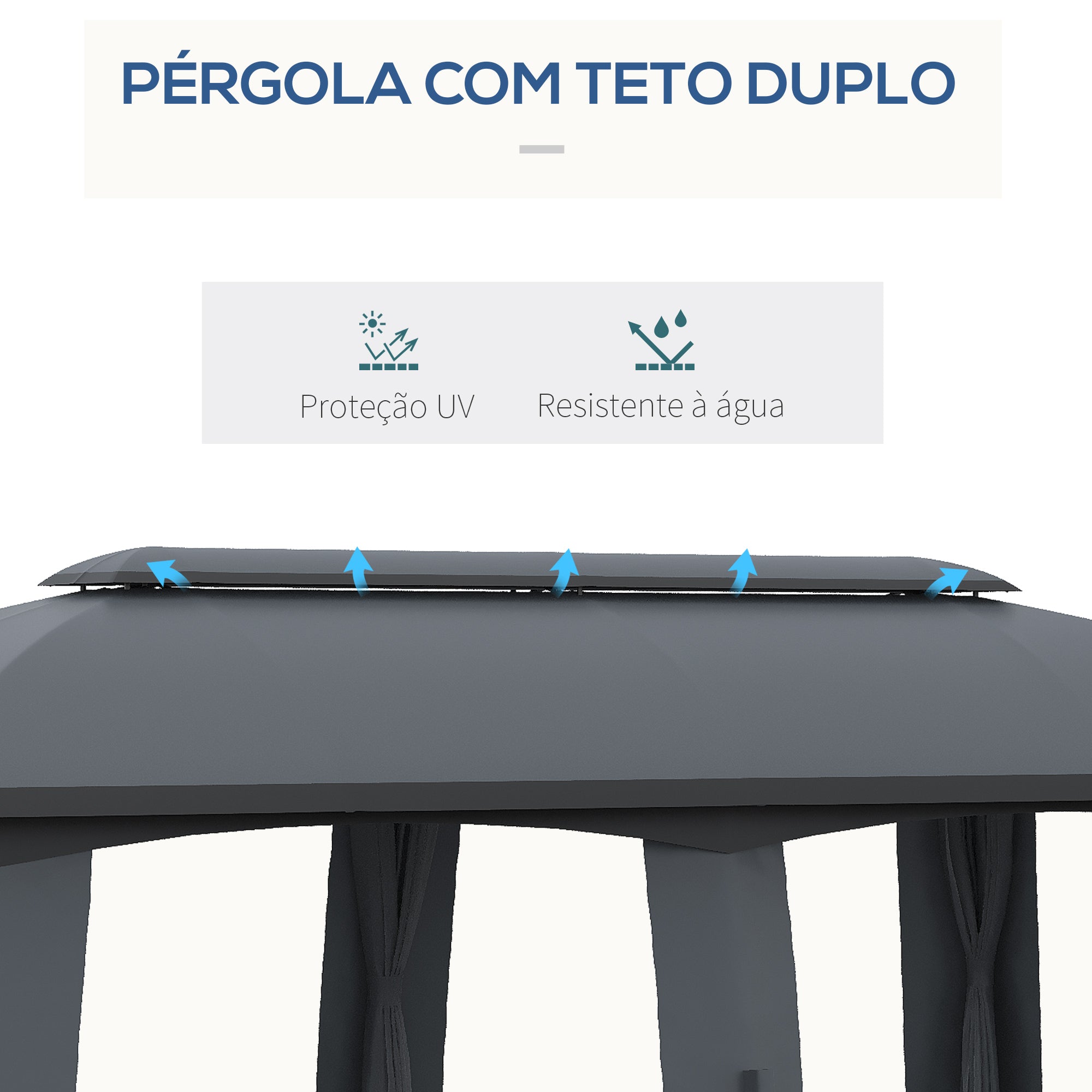 • MEDIDAS TOTAIS: 300x600x278cm (CxLxA). Altura do beiral: 190 cm. Requer montagem Elegância e conforto para suas reuniões com a família e/ou amigos! Impressione os seus convidados com esta pérgola da Outsunny. A sua estrutura metálica e teto duplo chamam a atenção à primeira vista, mas o melhor está escondido atrás das múltiplas opções que a suas laterais permitem. Possui uma tela mosquiteira, para manter os insetos afastados, enquanto desfruta de uma agradável refeição em companhia de amigos ou familiares. É a solução perfeita para o seu jardim!
