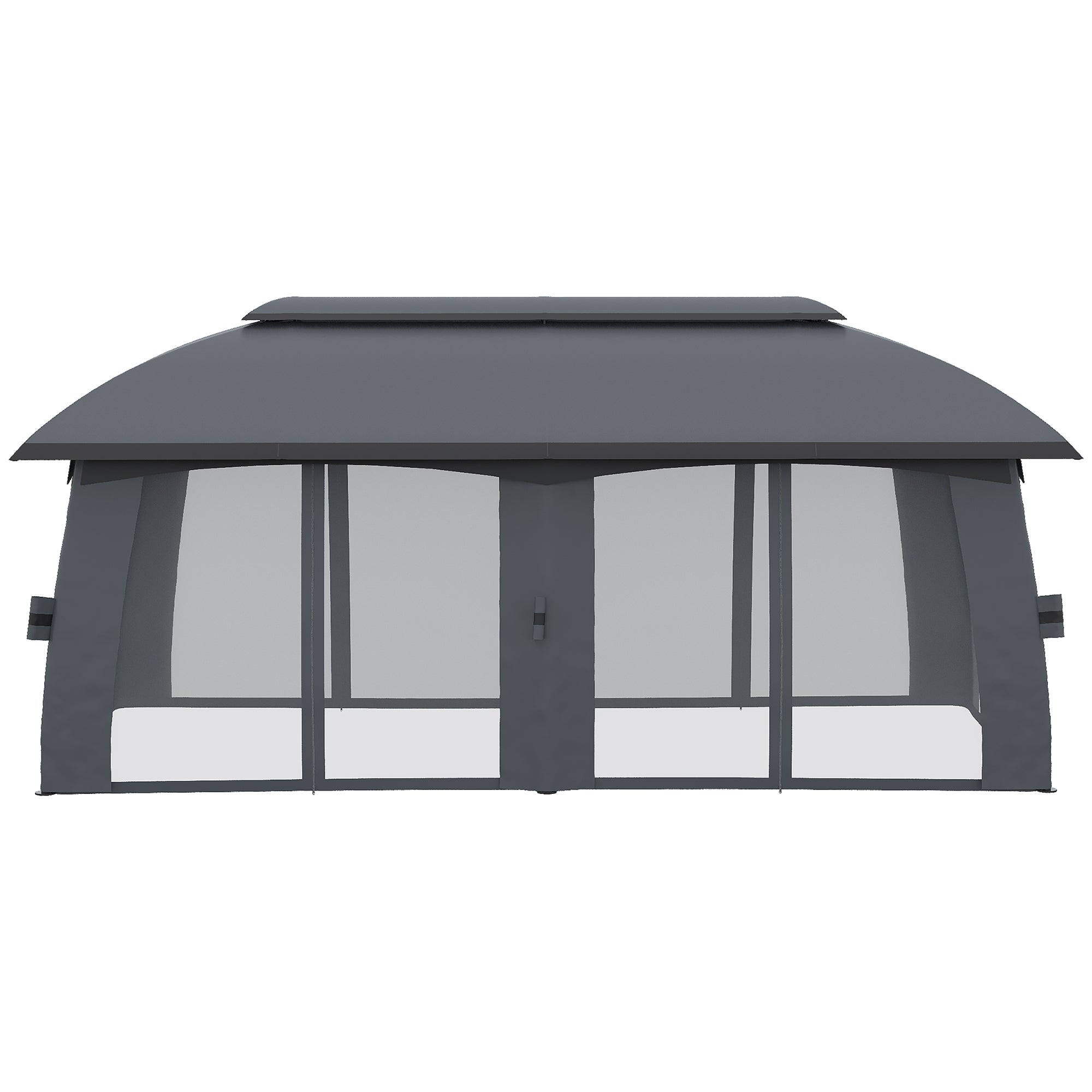 Pérgola de Jardim 3x6m Pérgola de Exterior com Teto Duplo 6 Cortinas Laterais 6 Telas Mosquiteiras com Zíper e Estrutura de Metal para Festas Eventos Pátio Cinza Escuro