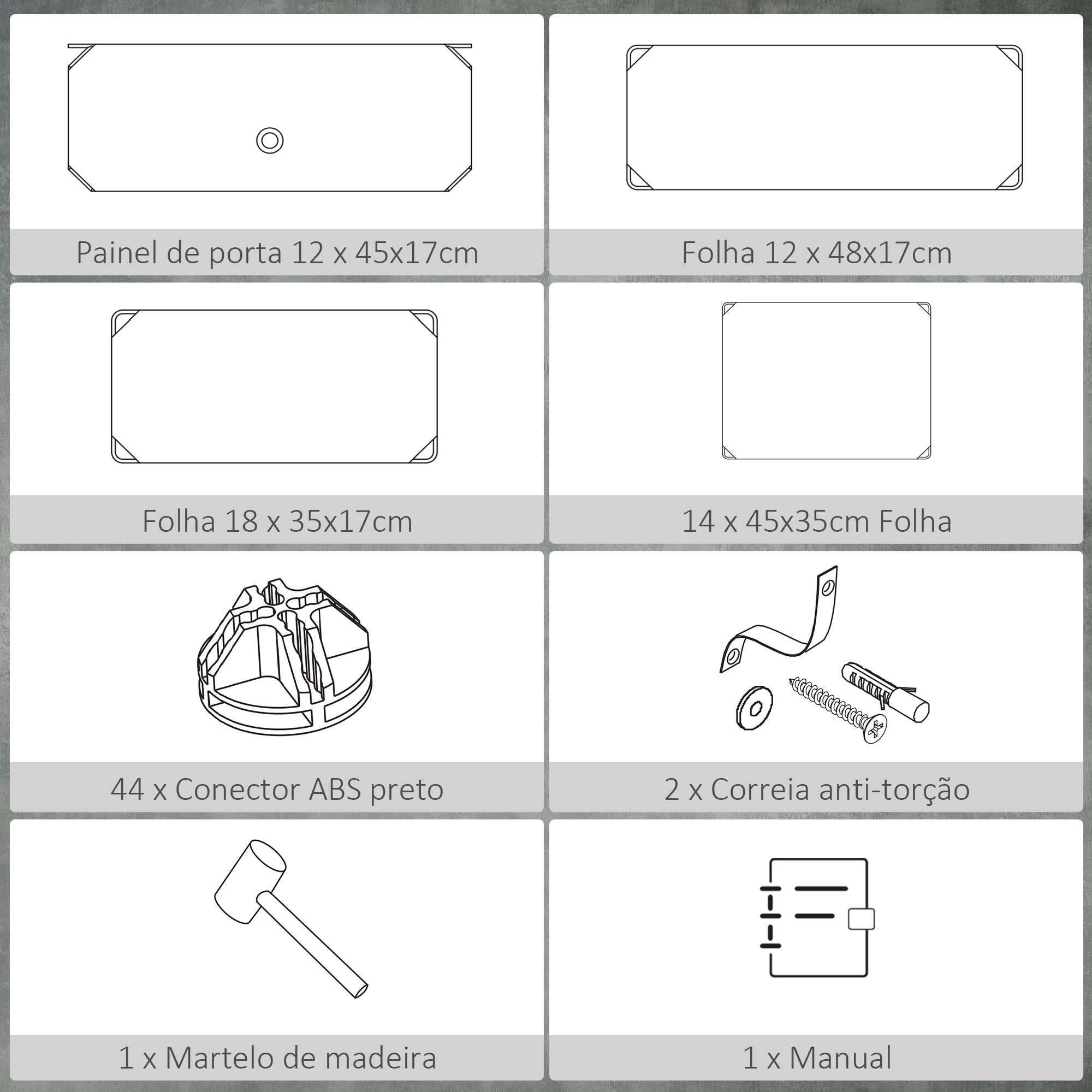 - MEDIDAS TOTAIS: Esta sapateira modular mede 94x37x108 cm (CxLxA). O seu desenho leve, mas resistente, suporta até 24 kg, oferecendo uma solução prática e eficiente para organizar a sua coleção de sapatos O pacote inclui: