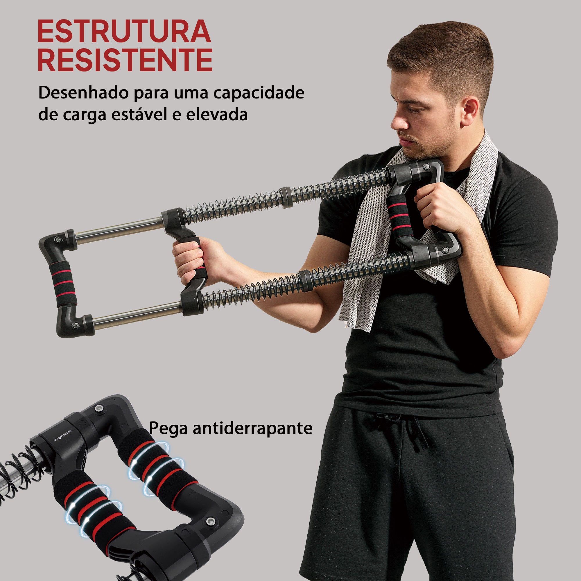 • O expansor de peito da SPORTNOW permite·lhe exercitar diferentes zonas do corpo com uma grande variedade de exercícios Tem uma resistência ajustável de 10 kg a 80 kg, adaptando·se às suas necessidades de treino Quatro molas garantem uma resistência uniforme, maximizando a eficácia de cada sessão O desenho compacto facilita a arrumação em casa ou no escritório O seu tamanho portátil torna·o perfeito para treinar em qualquer lugar, mesmo em viagem Este extensor é ideal para trabalhar vários músculos, como os bíceps, tríceps, ombros, peito, costas e muito mais