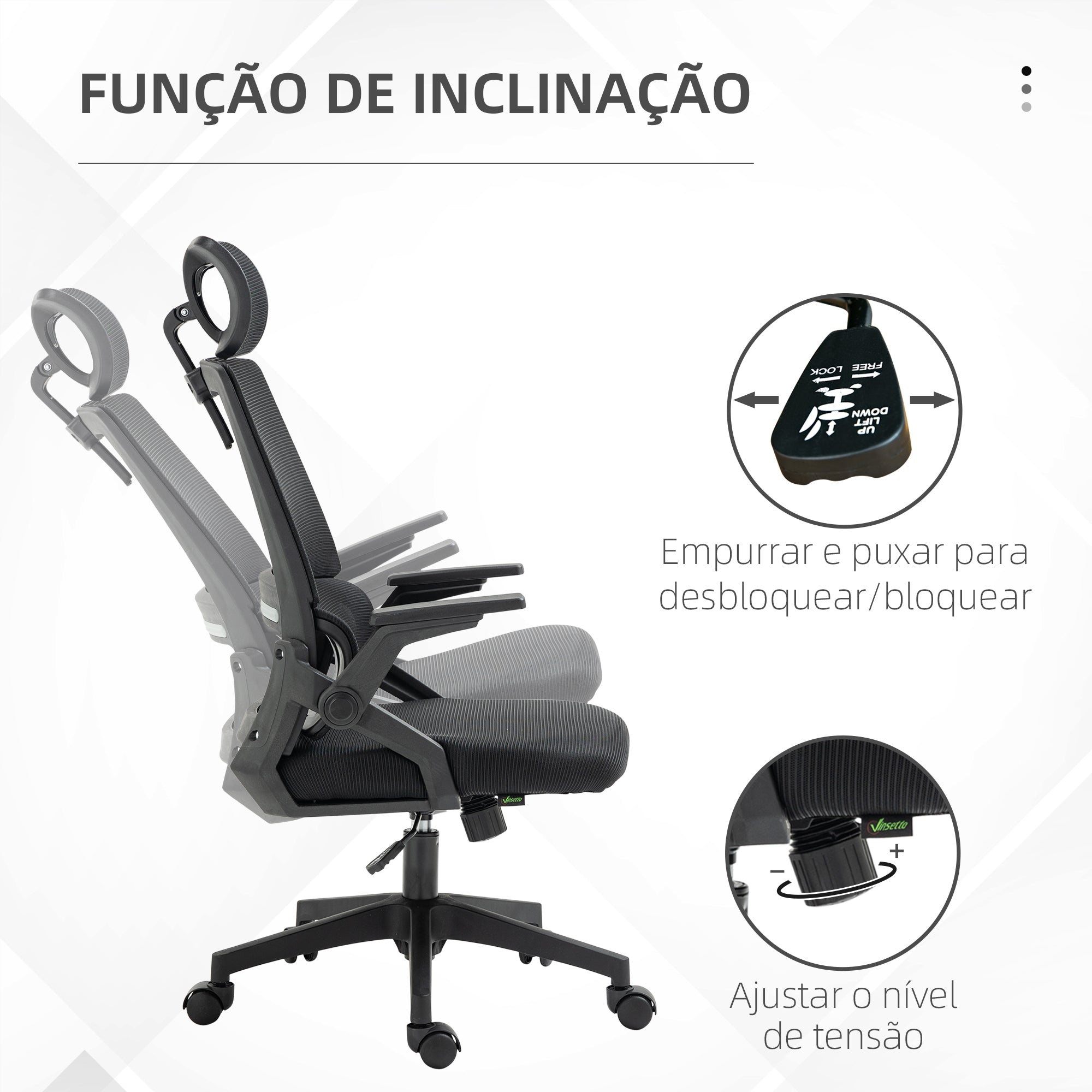 Cadeira de Escritório de Malha Cadeira de Escritório Giratória com Altura e Apoio para a Cabeça Ajustáveis e Apoio para os Braços Estilo Moderno Carga 120 kg para Estúdio 58x61x102-119 cm Preto